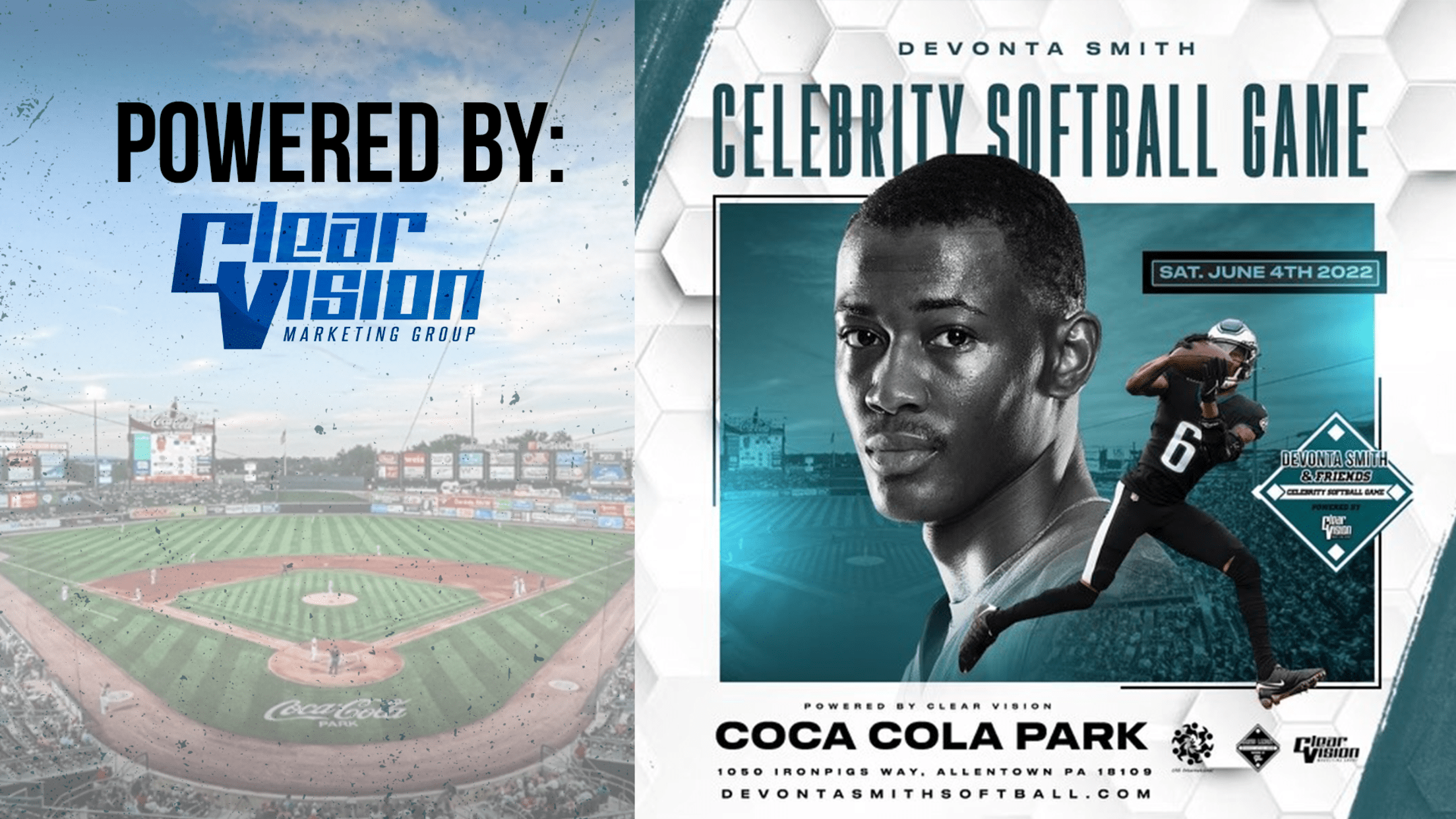 Allentown, Pennsylvania (11 April 2022) – The Lehigh Valley IronPigs and Clear Vision Marketing Group have announced the DeVonta Smith and Friends Celebrity Softball Game which will take place at Coca-Cola Park in Allentown, PA on Saturday, June 4. The event will feature a pre-game Home Run Derby followed by the Celebrity Softball game. Gates will open for the event at 12 p.m. with the Home Run Derby scheduled for 2 p.m. and the Softball Game scheduled for 3 p.m.