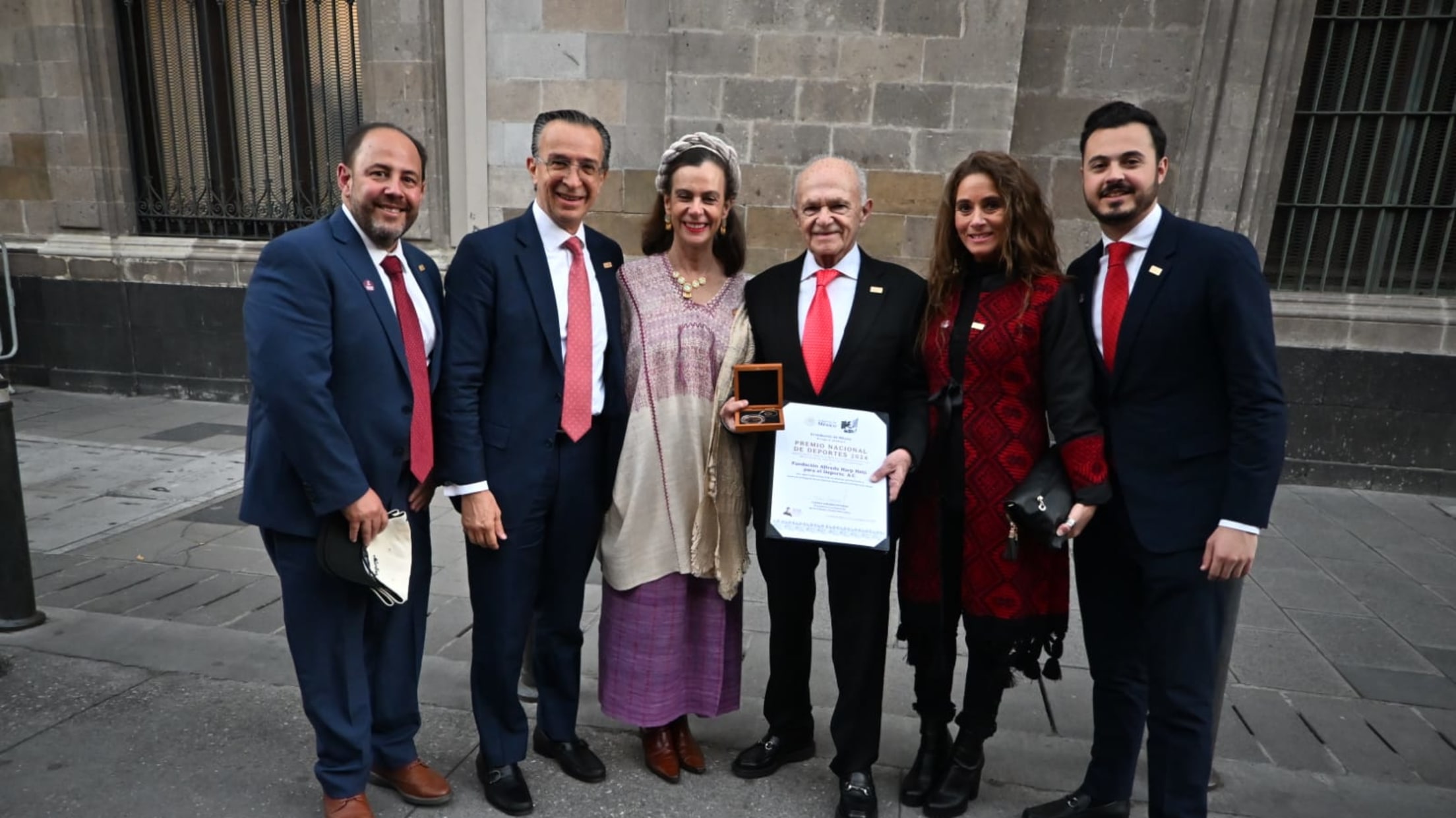 El CP Alfredo Harp Helú, acompañado de su esposa, la Dra. María Isabel Grañén Porrúa y de su hijo, Santiago Harp Grañén, recibió el reconocimiento la tarde de este miércoles en la ceremonia realizada en el Palacio Nacional, en el evento encabezado por la presidente de México, Claudia Sheinbaum, y el titular de la Comisión Nacional de Cultura Física y Deporte, Rommel Pacheco.