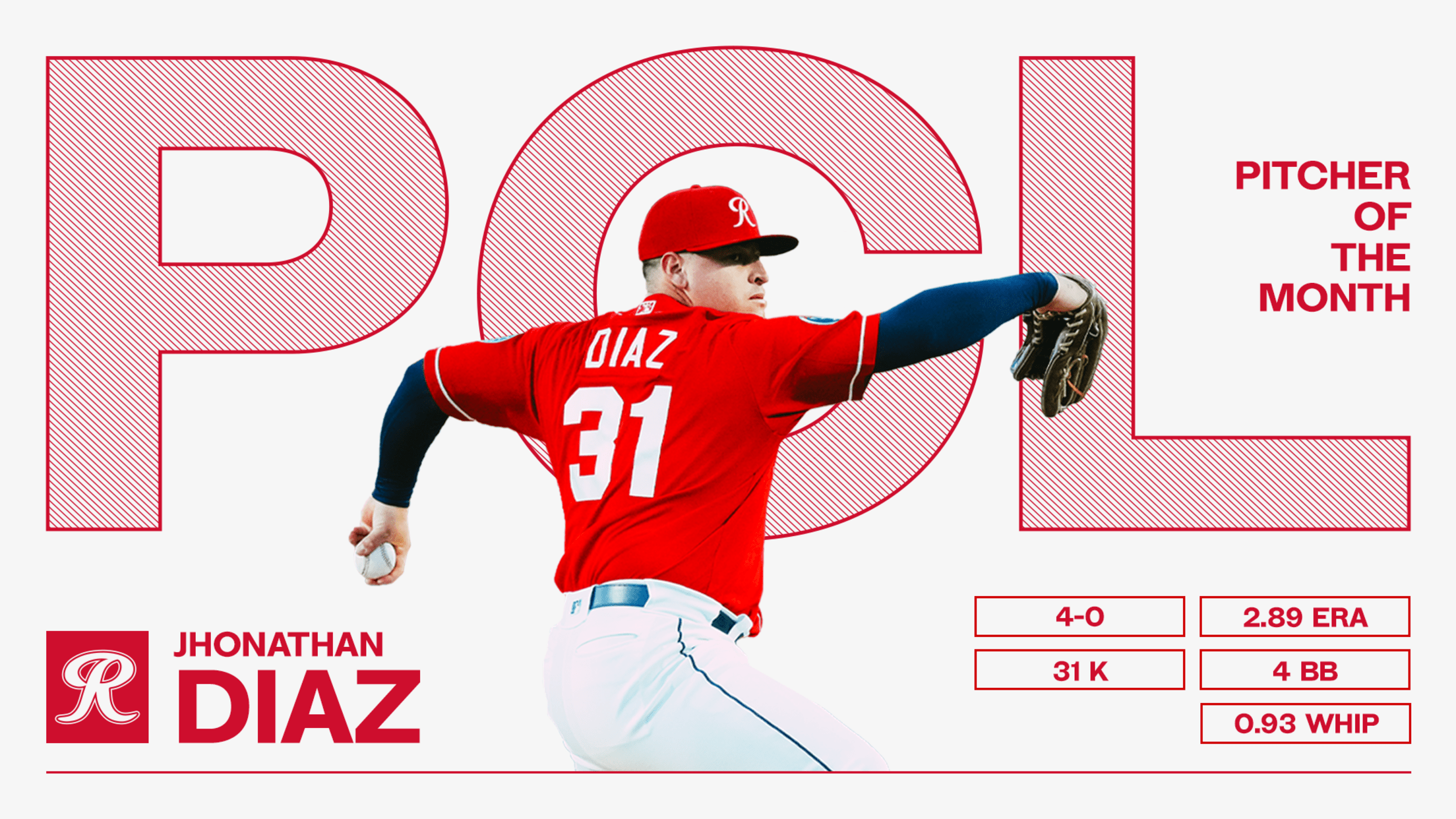 TACOMA, WA – Tacoma Rainiers’ starting pitcher Jhonathan Diaz was named Minor League Pitcher of the Month by both the Seattle Mariners and Minor League Baseball this week.
