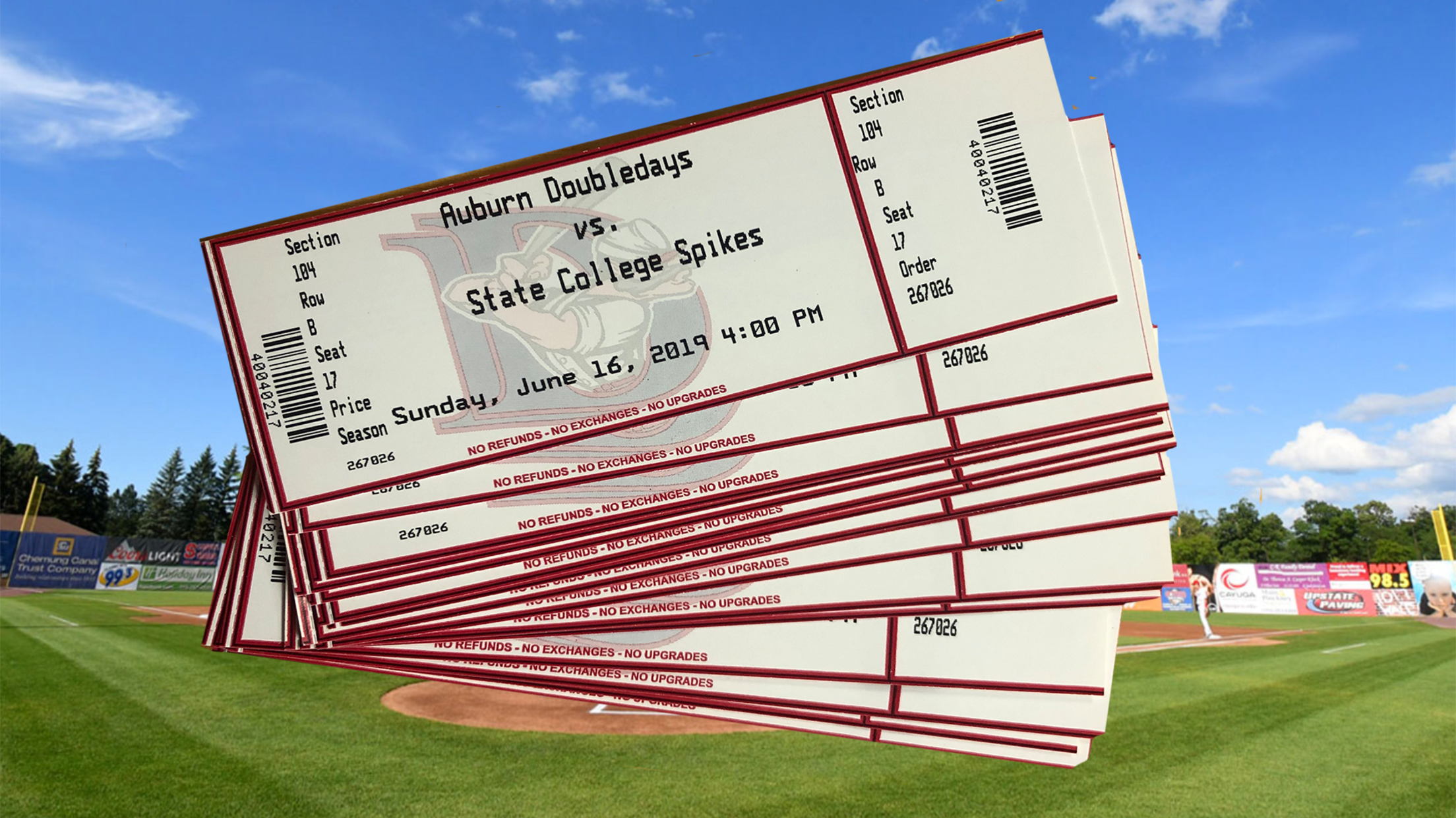 To buy single game tickets, visit our office or check out our website (https://www.milb.com/auburn/tickets/single-game-tickets). For all the latest Doubledays news, follow us on Facebook (https://www.facebook.com/OfficialAuburnDoubledays), Twitter (@Doubledays), Snapchat (adoubledays), and Instagram (@auburndoubledays).