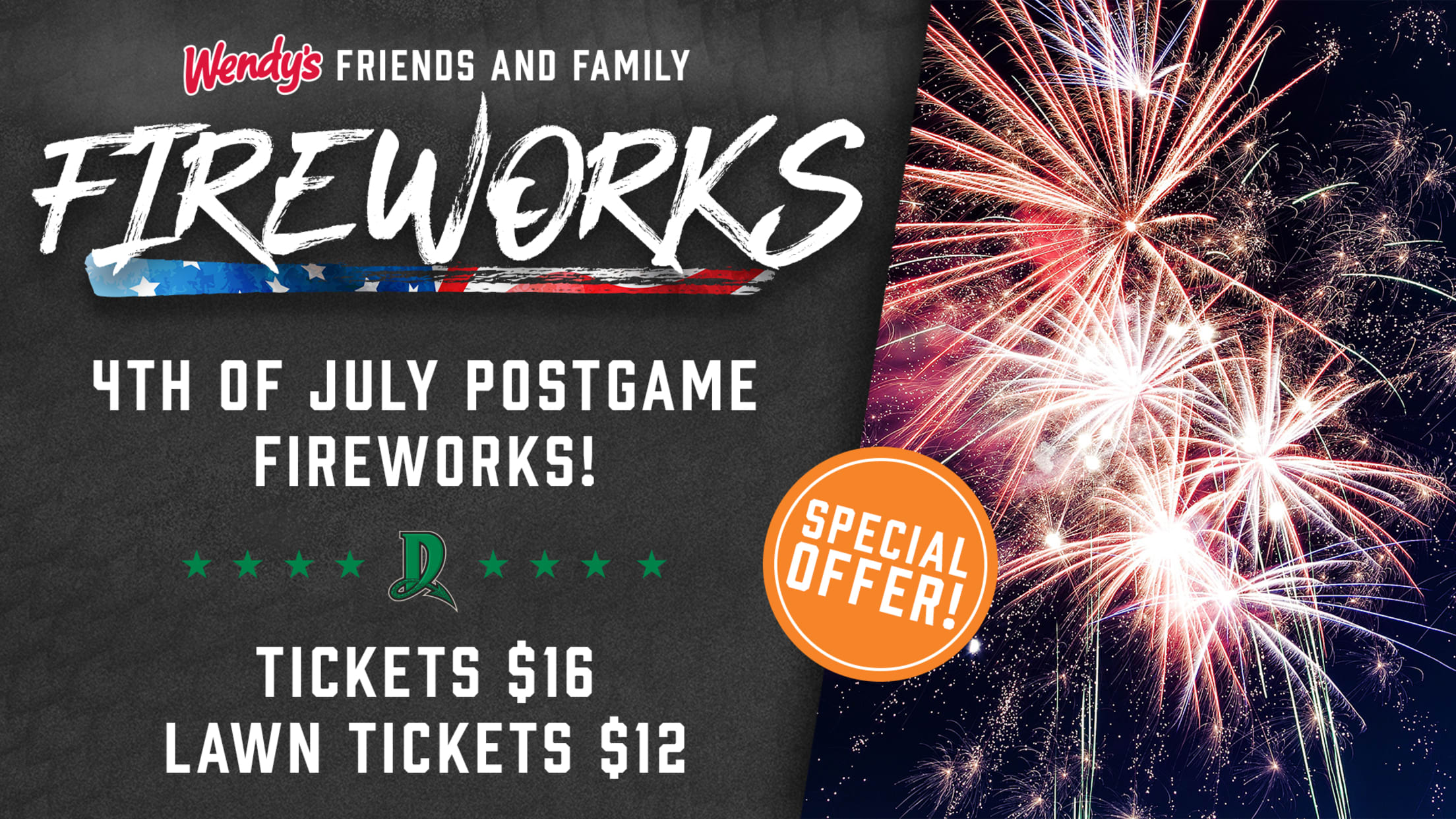 Fans will be able to view the fireworks show on July 4th from seating areas at the Dragons game. For ticket information, call (937) 228-2287 or go to this link: http://www.milb.com/tickets/singlegame.jsp?sid=t459