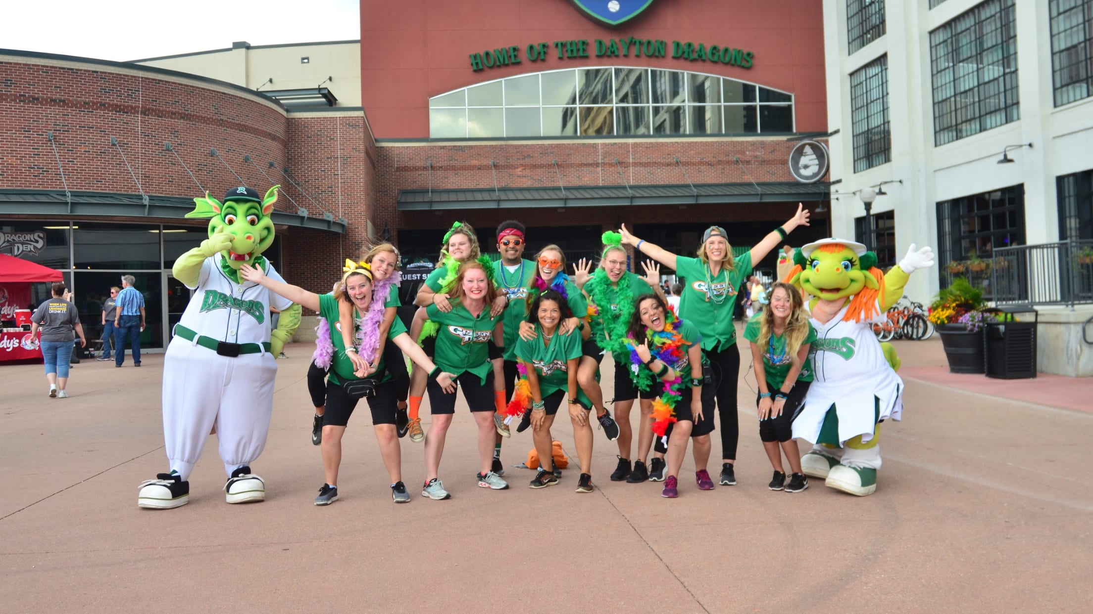 The Green Team is the Dragons' professional entertainment staff and its members facilitate all in-game skits at Fifth Third Field during Dragons games and other special events. The members of the Green Team are the backbone to the Dragons entertainment production and are responsible for welcoming fans to the ballpark; selecting and preparing contestants for skits; interacting with Dragons mascots and on-field hosts; dancing on the dugout; and shooting t-shirts to the fans in the seats.