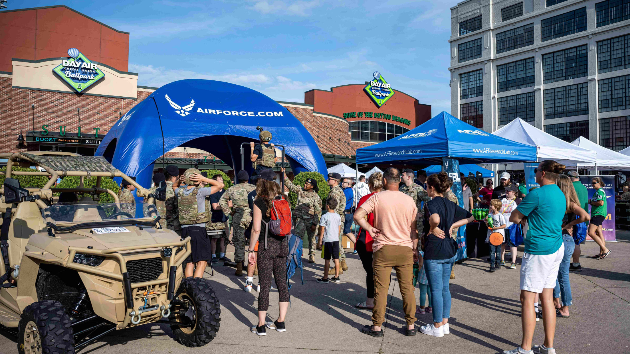 Inside the ballpark, Colonel Dustin C. Richards and Brigadier General Jason E. Bartolomei will throw out ceremonial first pitches. The national anthem will be performed by Technical Sergeant Ainsley DeWitt and signed by Master Sergeant Michelle Lee. Colors will be presented by the Honor Guard from Wright-Patterson Air Force Base.