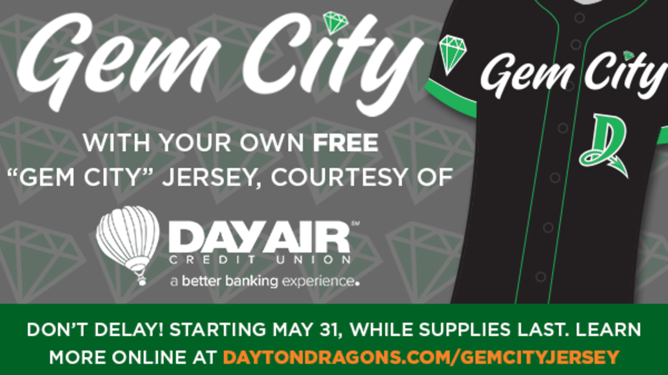 Dragons fans can get their very own “Gem City” jersey. However, you can’t get it in the team store. And you can’t buy it online. The only way fans can get their very own “Gem City” jersey for FREE is by visiting their local Day Air Credit Union. The promotion begins on Tuesday, May 31 and is valid while supplies last.