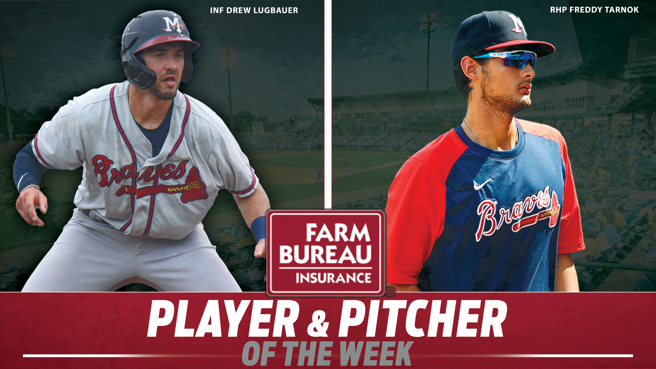 PEARL, MS - The Mississippi Braves and Farm Bureau are excited to announce that infielder Drew Lugbauer and starting pitcher Freddy Tarnok has been named Farm Bureau Pitcher and Player of the Week.