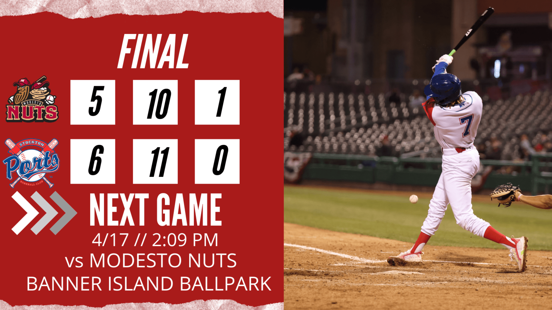 STOCKTON, Ca. – The Ports scored six runs in the first two innings and their bullpen allowed just one Modesto run over the final 5.2 frames as Stockton notched its third win in a row, beating the Nuts 6-5 on Saturday night at Banner Island Ballpark.