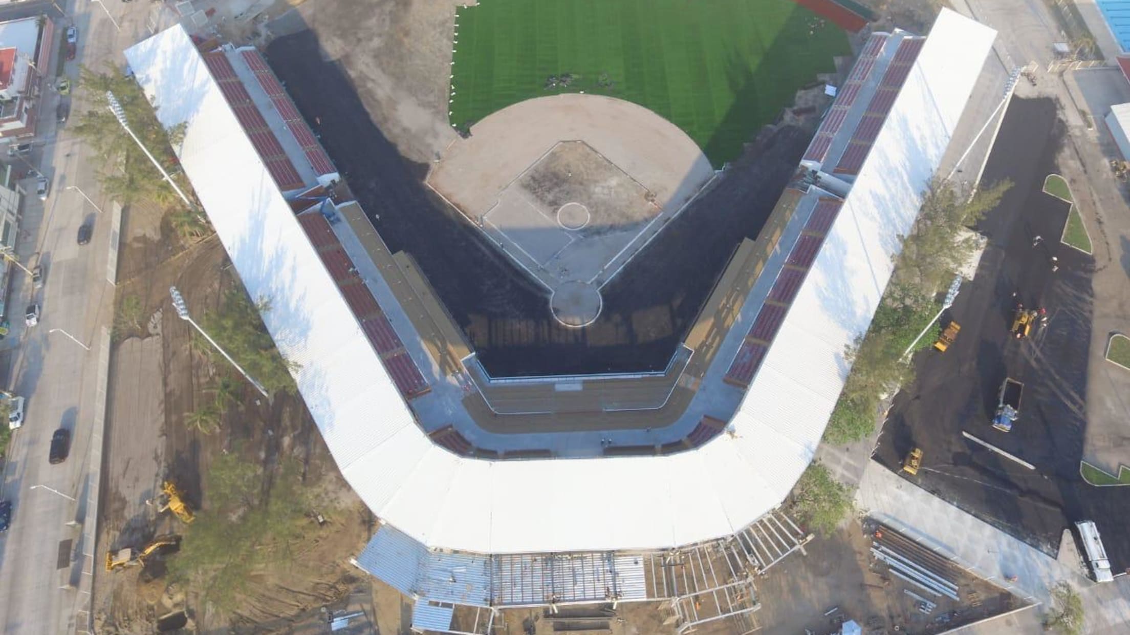 La nueva zona en el jardín izquierdo, denominada “cuadrangular”, continúa con buen paso. También se pudieron ver los avances en los bullpens local y visitante, los cuales contarán con baños para cada novena, así como en las jaulas de bateo de cada equipo, las cuales estarán techadas.
