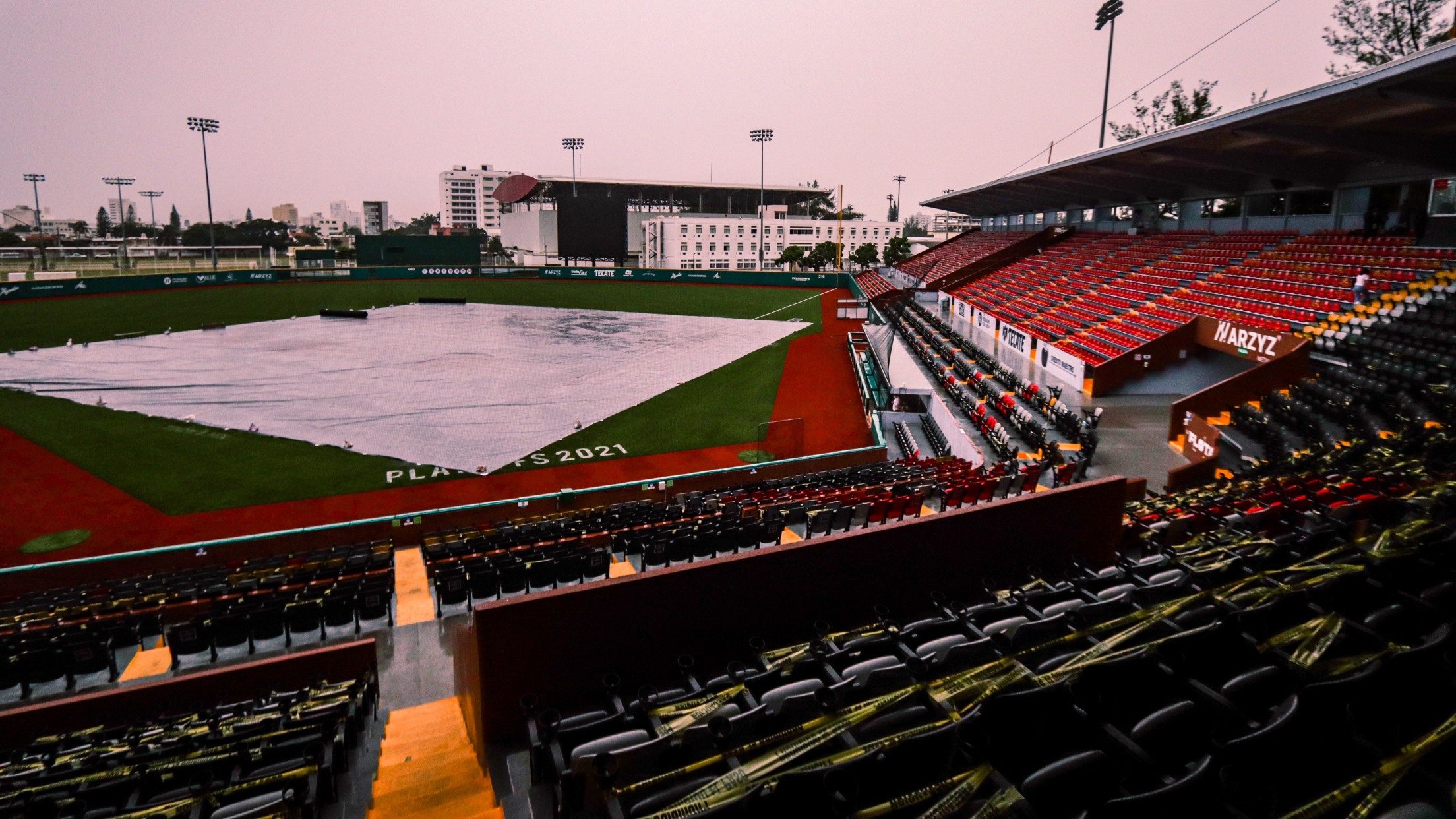 Xalapa, Ver. (Prensa El Águila - Paola Ríos) 7 de noviembre de 2021.- Debido a la lluvia provocada por el Frente Frío 7 que afectó a distintos estados entre ellos Veracruz y la zona conurbada Veracruz-Boca del Río, el tercer juego de la serie entre Guerreros vs El Águila-Leones quedó
