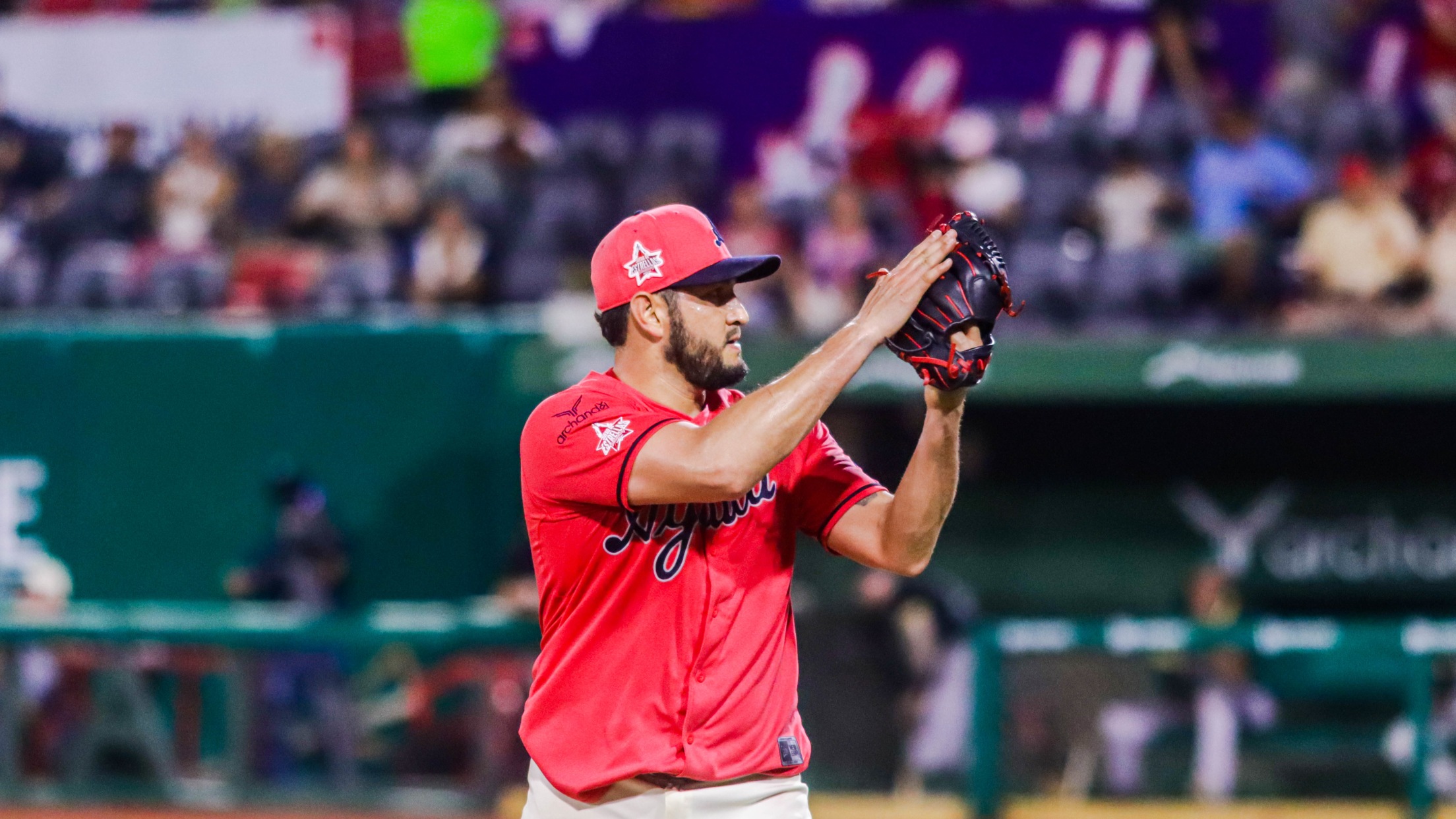 Boca del Río, Ver. www.elaguilabeisbol.com Paola Ríos/ 6 de julio del 2024. David Reyes lanzó la ruta completa y pintó de blanco a la ofensiva leonesa en la victoria de El Águila de Veracruz por pizarra 11-0 a Bravos de León y los jarochos conquistan la serie en el Beto