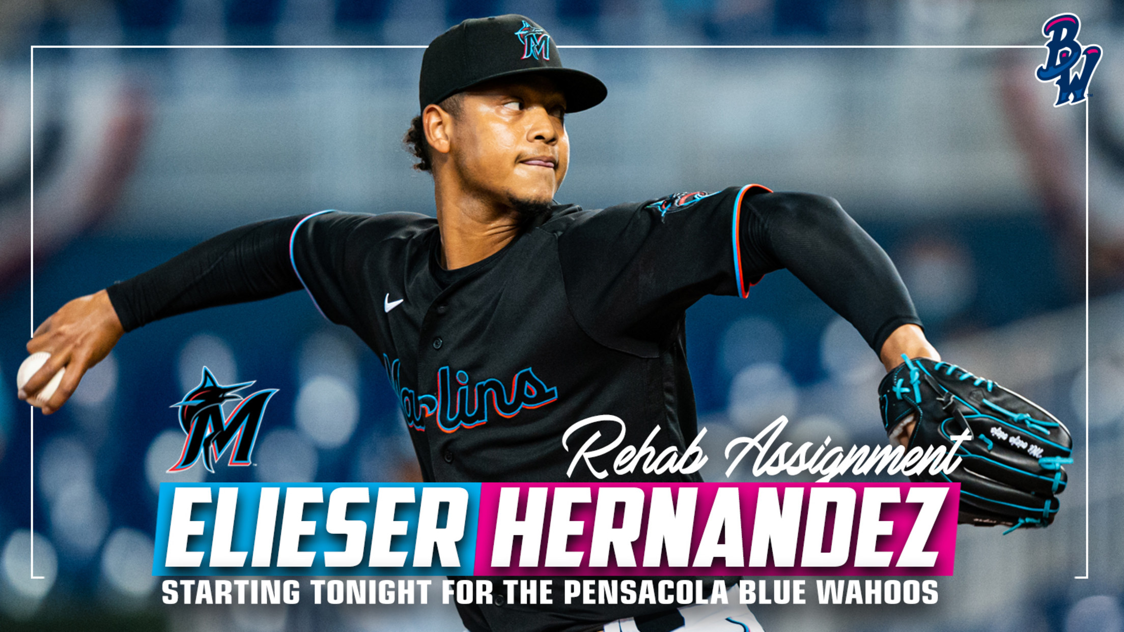 Miami Marlins starting pitcher Elieser Hernandez will pitch for the Blue Wahoos on Saturday, joining the Blue Wahoos on a Major League rehab assignment as he prepares to return to the MLB level after suffering a quad strain in June.