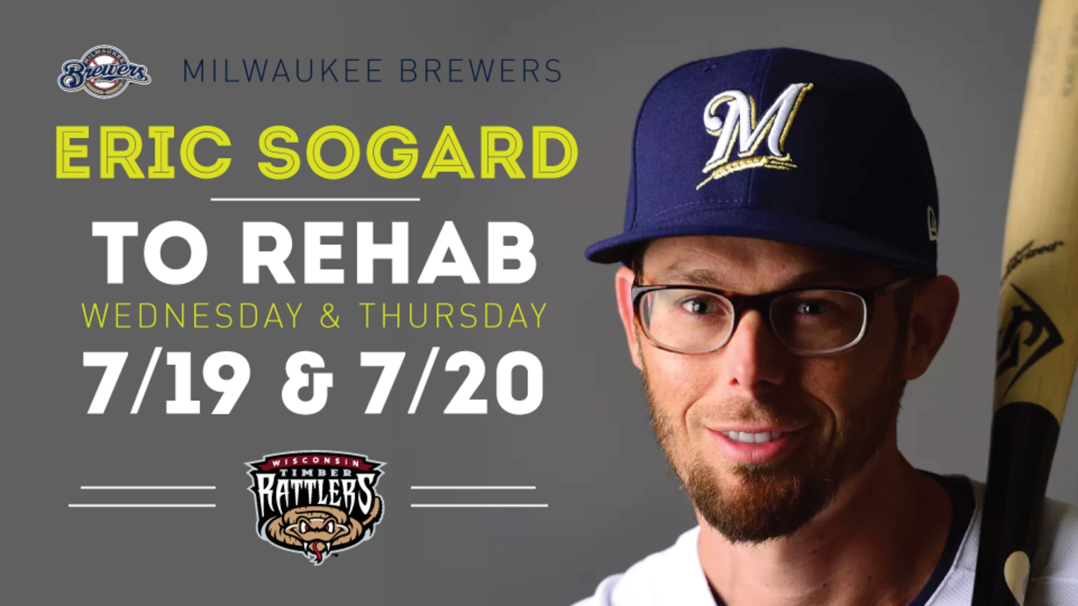 GRAND CHUTE, WI - The Milwaukee Brewers have announced that Eric Sogard will join the Wisconsin Timber Rattlers for a Major League rehabilitation assignment starting on Wednesday. He will be scheduled to be with the Timber Rattlers for the first two games of a series with the South Bend Cubs