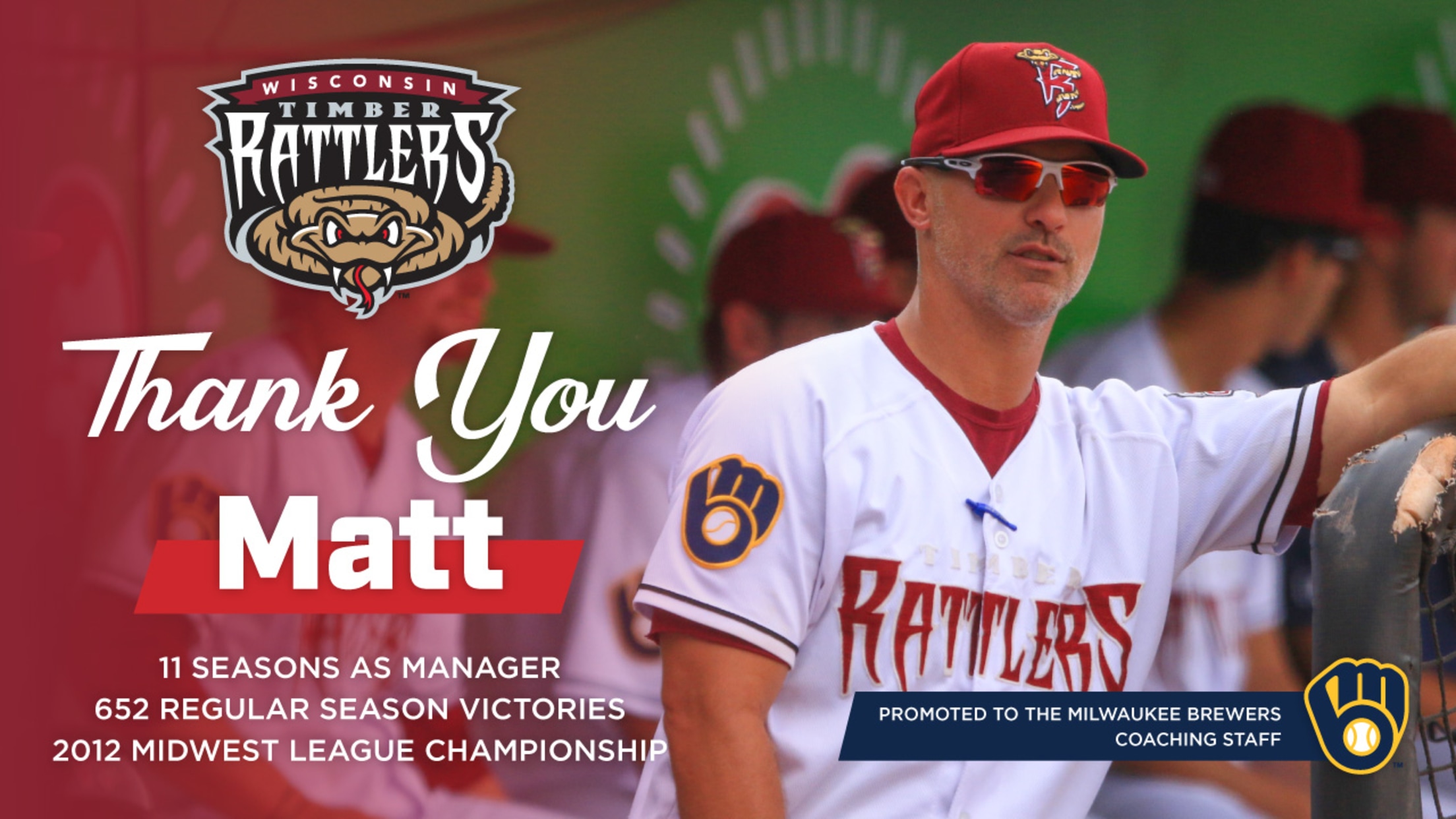 “I have had the chance to work with Matt on a day-to-day basis for over ten years and have seen how talented of a teacher he is and how lucky the players have been to have him as a manager,” said Rob Zerjav, President and CEO of the Timber Rattlers. “As sad as we are to see Matt leaving, he will always be a part of the Timber Rattlers family and we are all so happy for Matt and his family.”