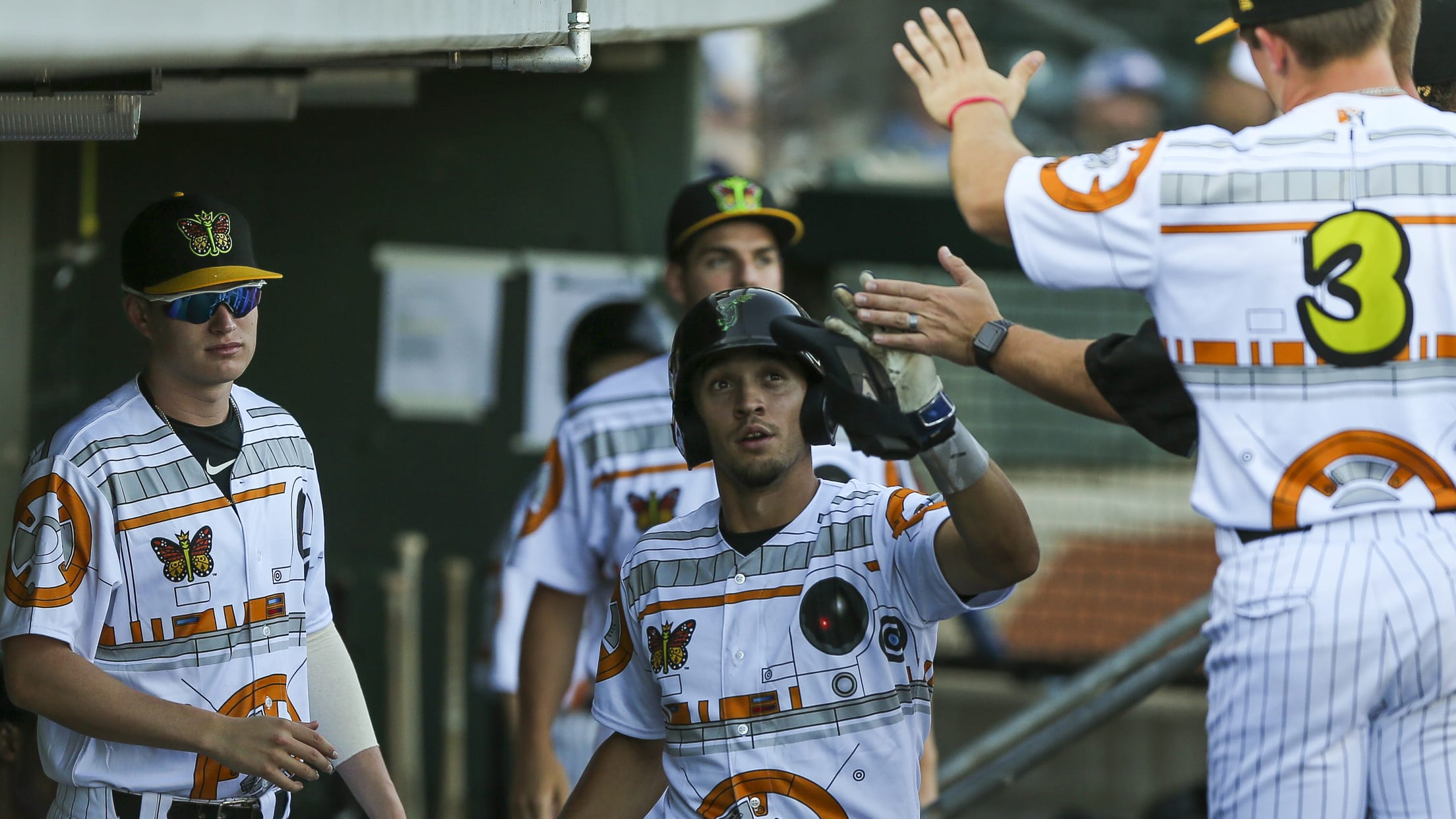 Suiting up in specially-designed Star Wars-inspired jerseys as part of Star Wars Weekend, the Eugene Emeralds transformed into Los Monarcas de Eugene as part of Minor League Baseball's Copa de la Diversion initiative.