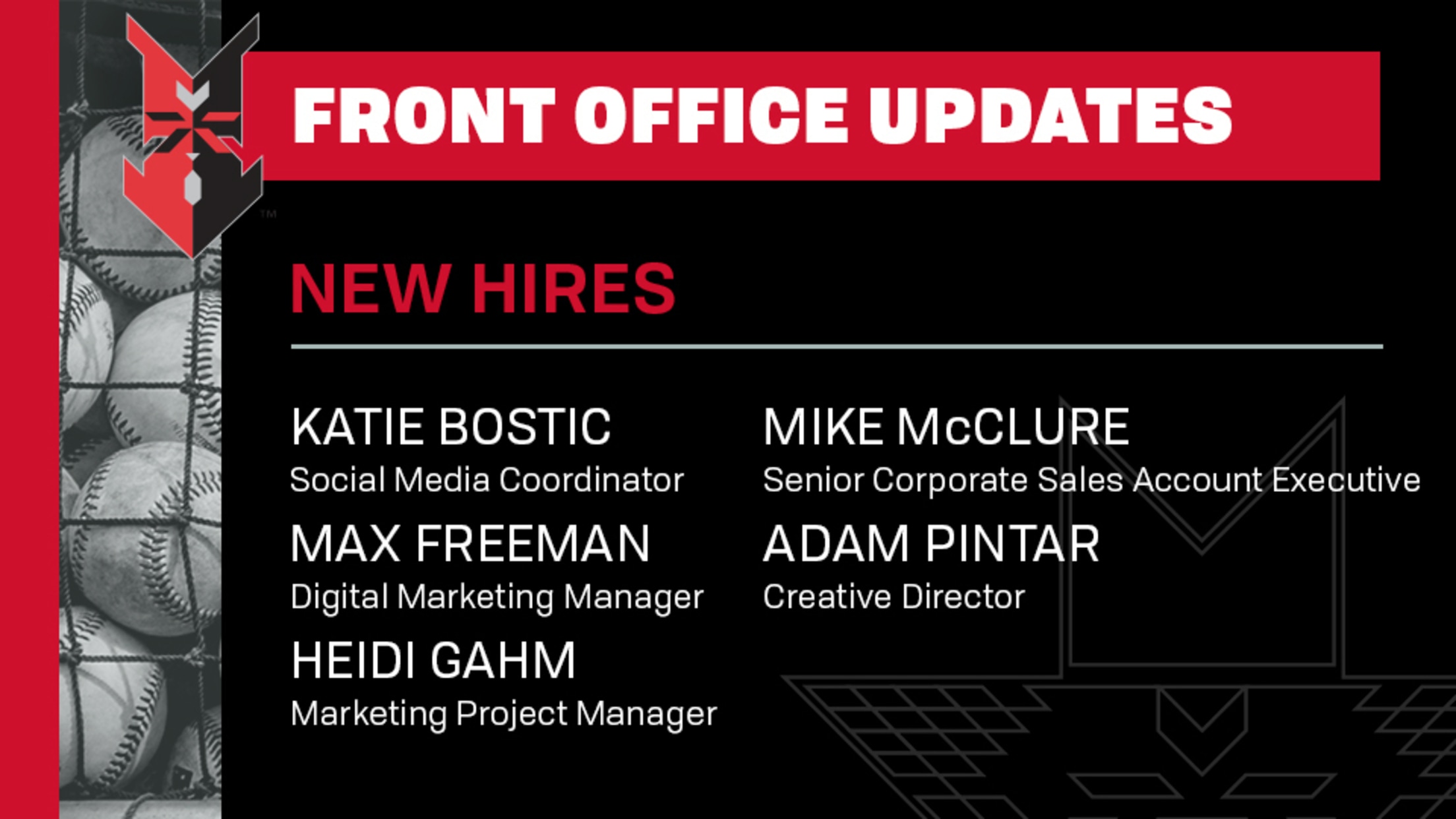 Mike McClure is the most recent addition to the front office, having joined the organization last week as a senior corporate sales account executive. McClure’s career in sports has included successful stints with the Detroit Pistons, Indiana Pacers and Florida State University Athletics. He also has local sports media sales experience with WTTV-4 and Comcast Spotlight. Mike is a 1990 graduate of Illinois State University.