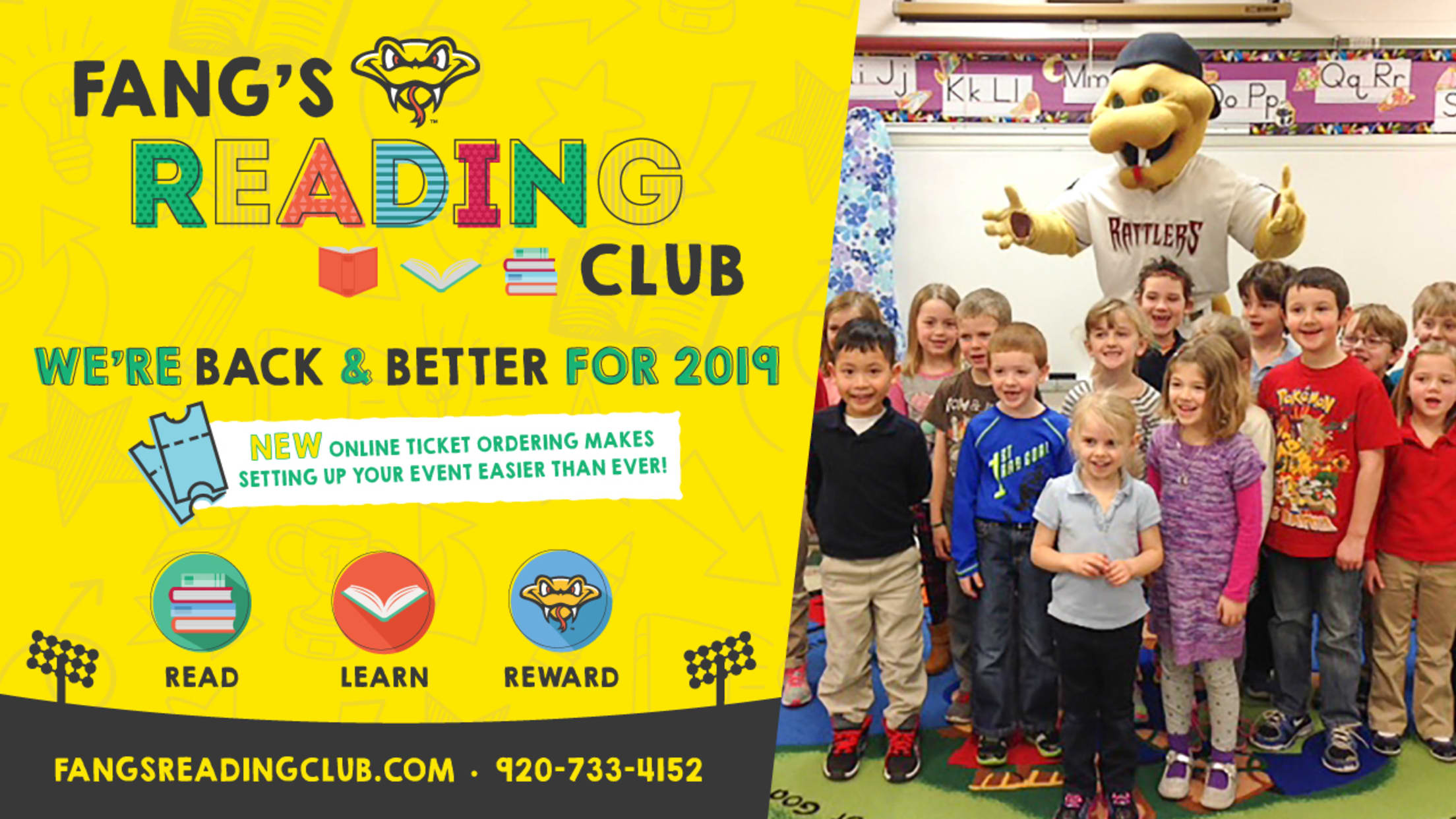 GRAND CHUTE, WI - School is back in session and Fang's Reading Club is open for enrollment! The incentive-based rewards program that encourages reading development in children from grades K through 5 is presented by Fox Communities Credit Union, Learning Rx, Myndology, and Tutor Doctor and now includes an easy, online ticket ordering option. Teachers and reading coordinators have until Friday, November 16 to get involved in this popular Wisconsin Timber Rattlers program.
