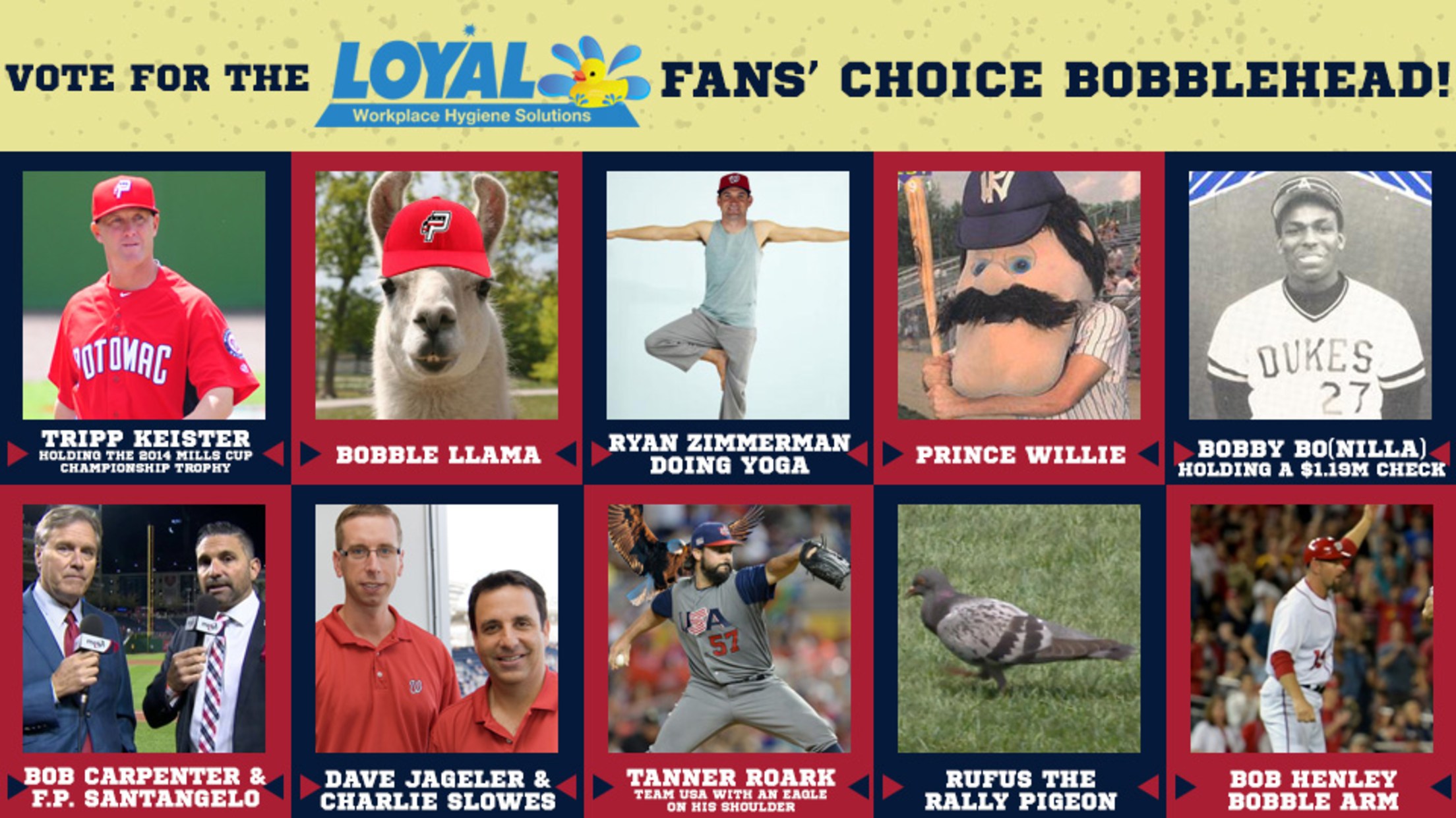 For the third consecutive year, the Potomac Nationals are planning a bobblehead giveaway chosen by a P-Nats fan vote, sponsored by Loyal Hygiene Solutions. The vote is based entirely off creative bobblehead proposal submissions!