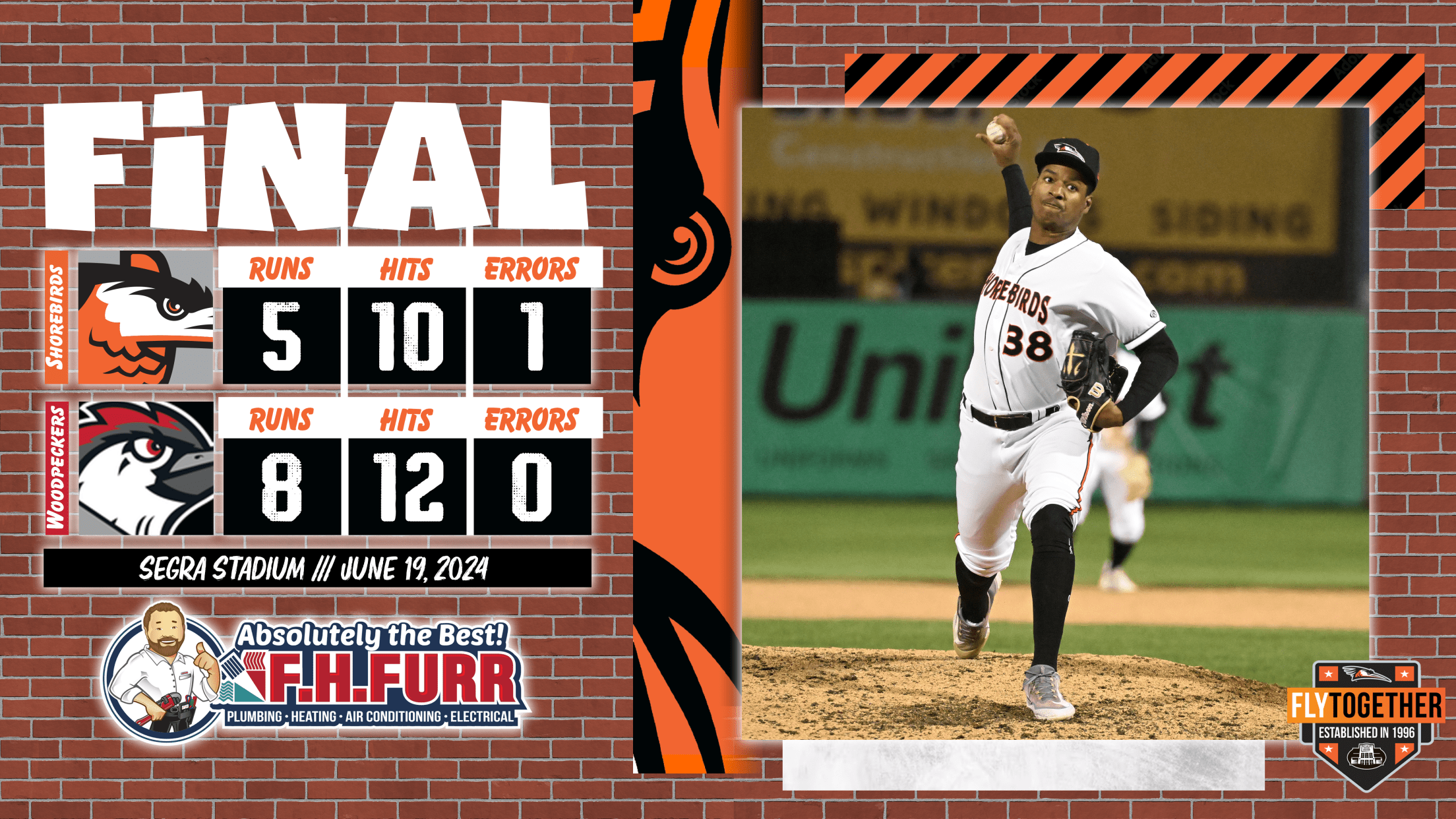 FAYETTEVILLE, NC: The Delmarva Shorebirds (22-42) suffered their second-straight defeat to the Fayetteville Woodpeckers (29-36) on Wednesday as they fell by a final of 8-5.