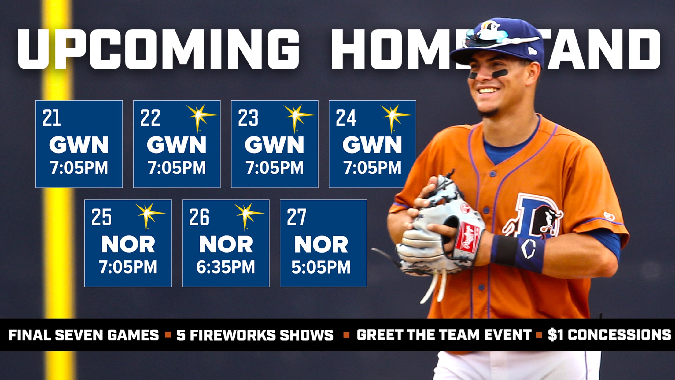 The first-place Durham Bulls will host their final four home games of the regular season from Thursday, August 24 through Sunday, August 27. Three fireworks shows, $1 Concessions, a Meet the Team event and the season's final Kids Run the Bases highligh the final four-game stanza.