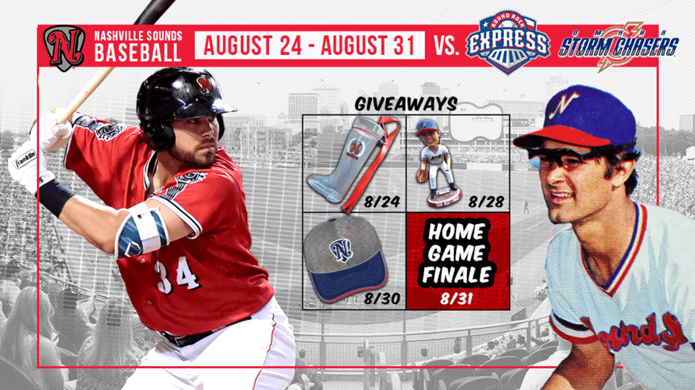 The Nashville Sounds Baseball Club wraps the 2017 home schedule with their final homestand at First Tennessee Park beginning Thursday, August 24 - an 8-game, 8-day stretch.The final homestand of the season welcomes the Round Rock Express, the Triple-A affiliate of the Texas Rangers, for four games from August 24-27.