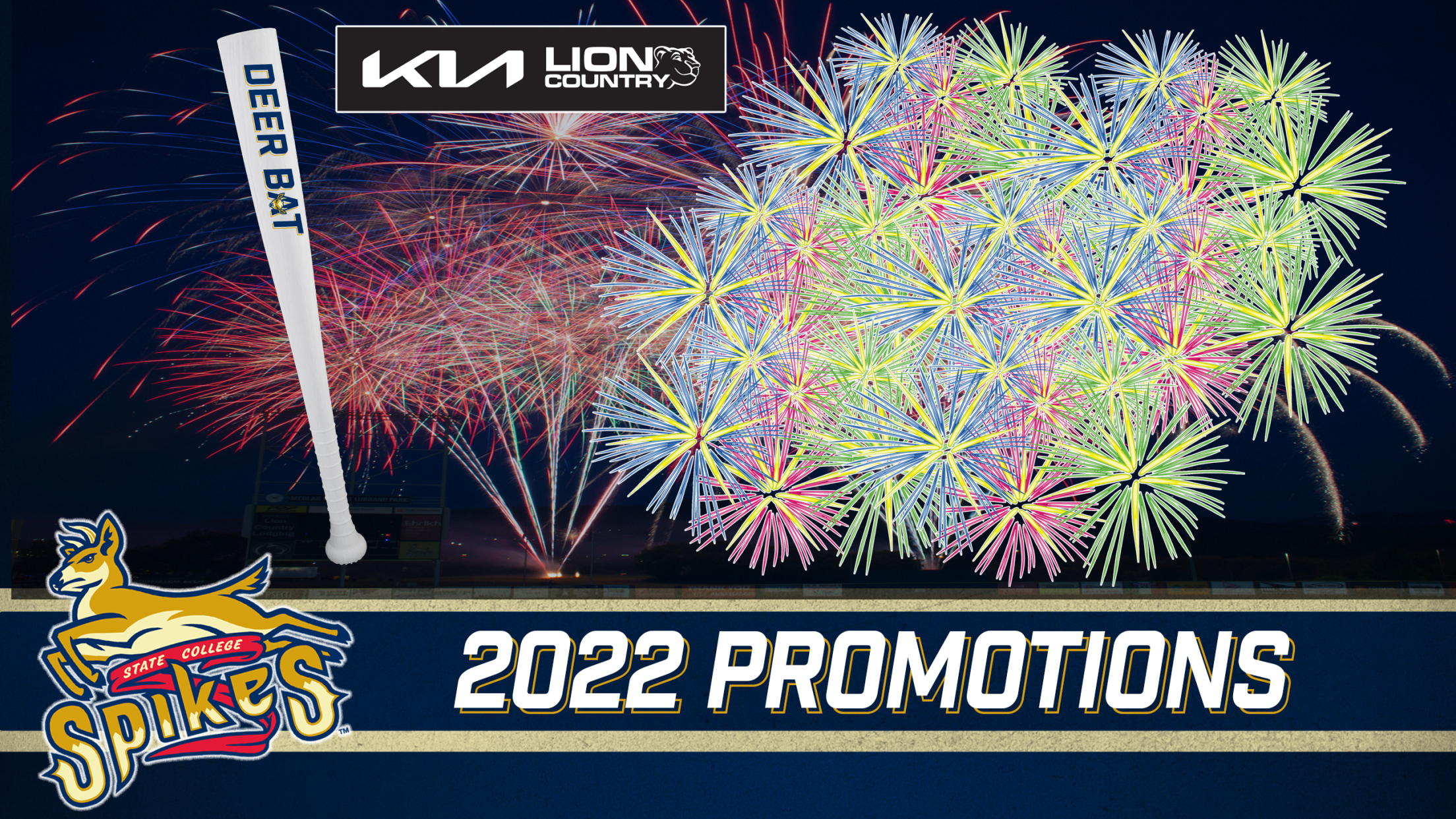 State College Spikes fans can look forward to a wonderful slate of fantastic FIREWORKS shows, new Deer Bats, presented by Lion Country Kia, with which to enjoy ice-cold ballpark beverages, and the full slate of Daily Fan Value Promotions this summer as part of the 40-game home schedule, the biggest in franchise history.