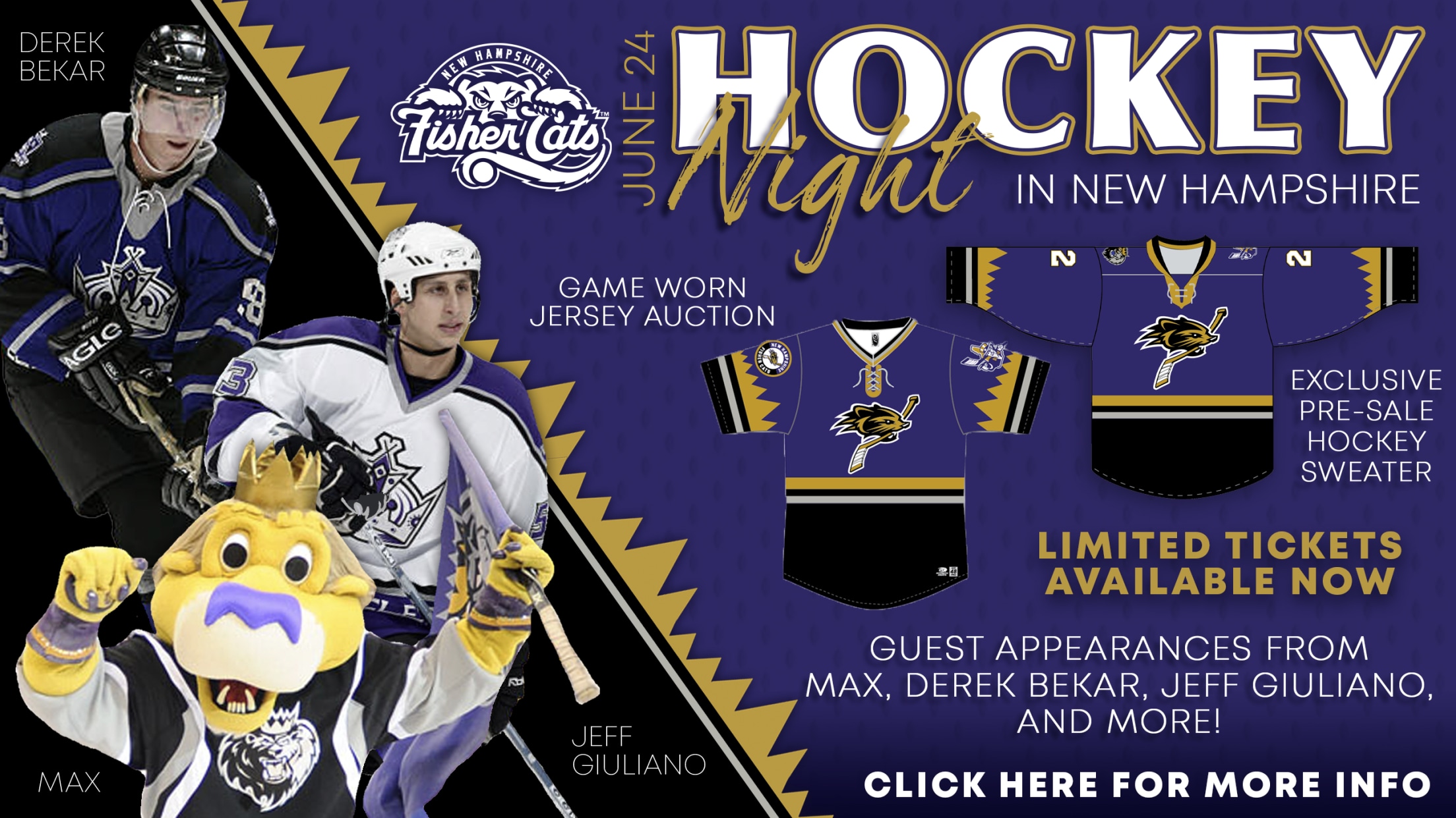 "We know how much the Monarchs and the game of hockey have meant to this community over the years, and we can't wait to celebrate that history on Hockey Night," said Fisher Cats President Mike Ramshaw. "We're so excited to have Max, Derek, and Jeff joining us, and we'll be adding to our celebrity guest list in the coming months. For now, the only question is: Mullets or Mini Sticks?"