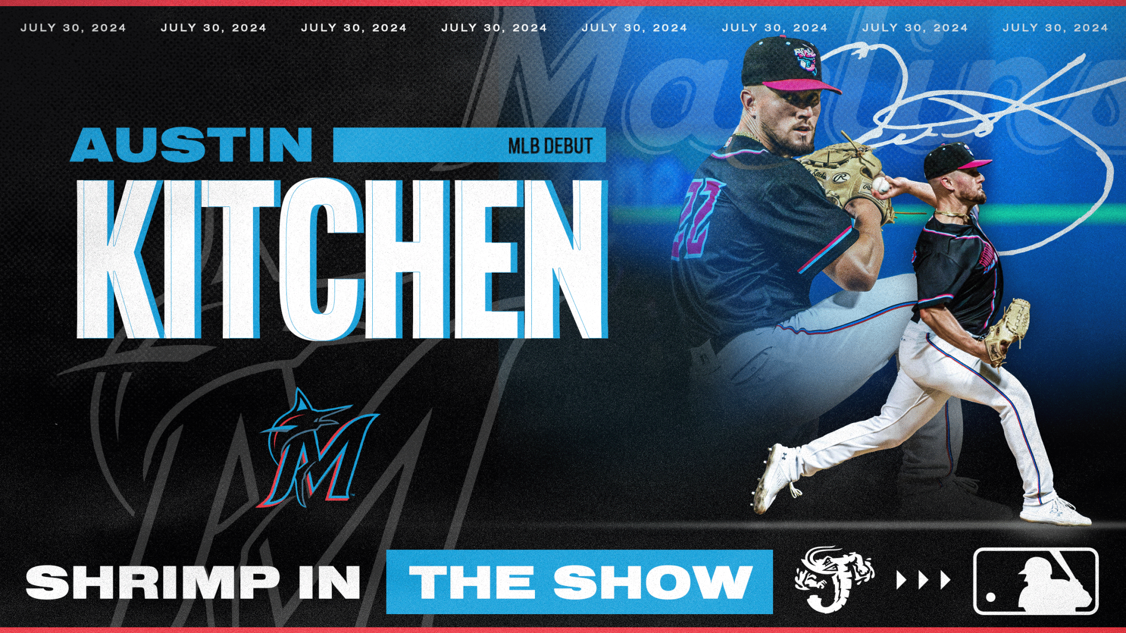 JACKSONVILLE, Fla. – Former Jacksonville Jumbo Shrimp left-hander Austin Kitchen made his major league debut Tuesday night for the Miami Marlins against the Tampa Bay Rays at Tropicana Field.