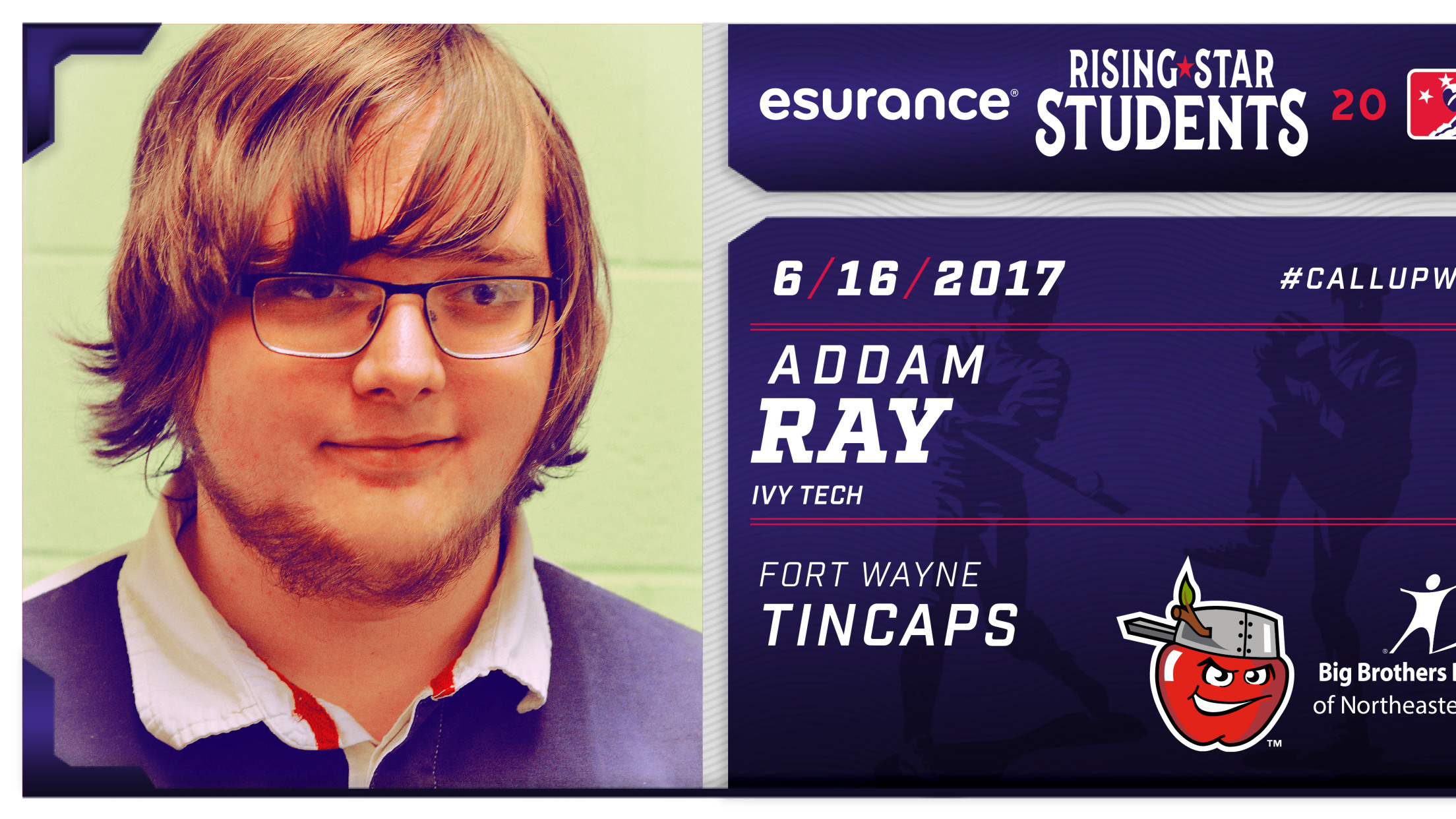 FORT WAYNE, Ind. -The Fort Wayne TinCaps, Esurance and Big Brothers Big Sisters of Northeast Indiana will recognize Addam Ray, a local high school senior and one of 14 Esurance Rising Star Students program winners, during a pregame presentation at Friday's game versus the Dayton Dragons. The Esurance Rising Star Students program, which highlights and celebrates Big Brothers Big Sisters of America (BBBSA) participants for their outstanding service to their local communities, awards select high school students a $5,000 college stipend each, courtesy of Esurance.
