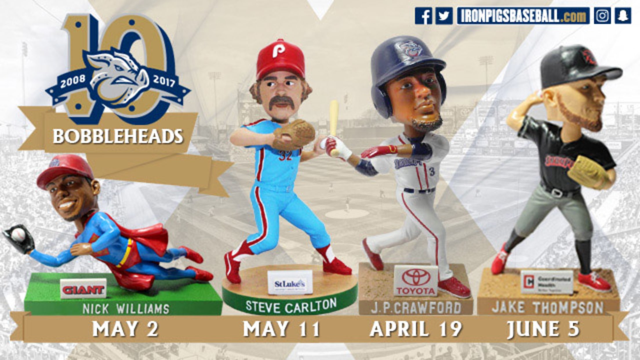 Four Bobblehead Giveaways On Tap For 2017 Single-Game Tickets Go On Sale March 4th By Jon Schaeffer February 7, 2017 Facebook Share X Share Email Copy Link [Empty Body] [Empty Body] Read More: Lehigh Valley IronPigs