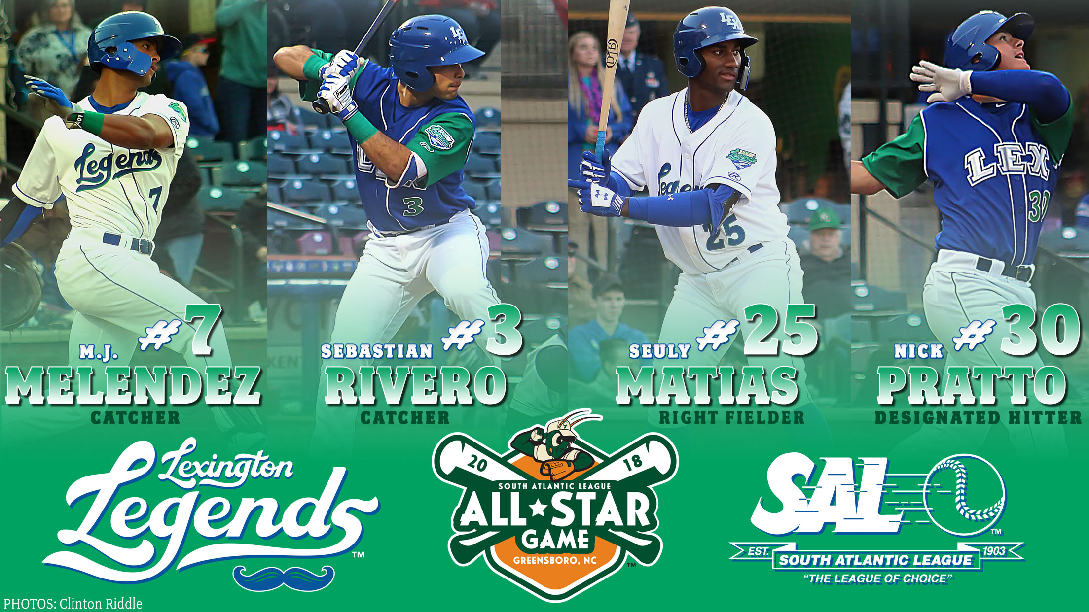 WHITAKER BANK BALLPARK (Lexington, KY) - The Legends are excited to announce today that Seuly Matias, Sebastian Rivero, Nick Pratto and MJ Melendez have been named to the South Atlantic All-Star Team for 2018. The 2018 South Atlantic League All-Star Game is scheduled to be played on June 19, 2018, at