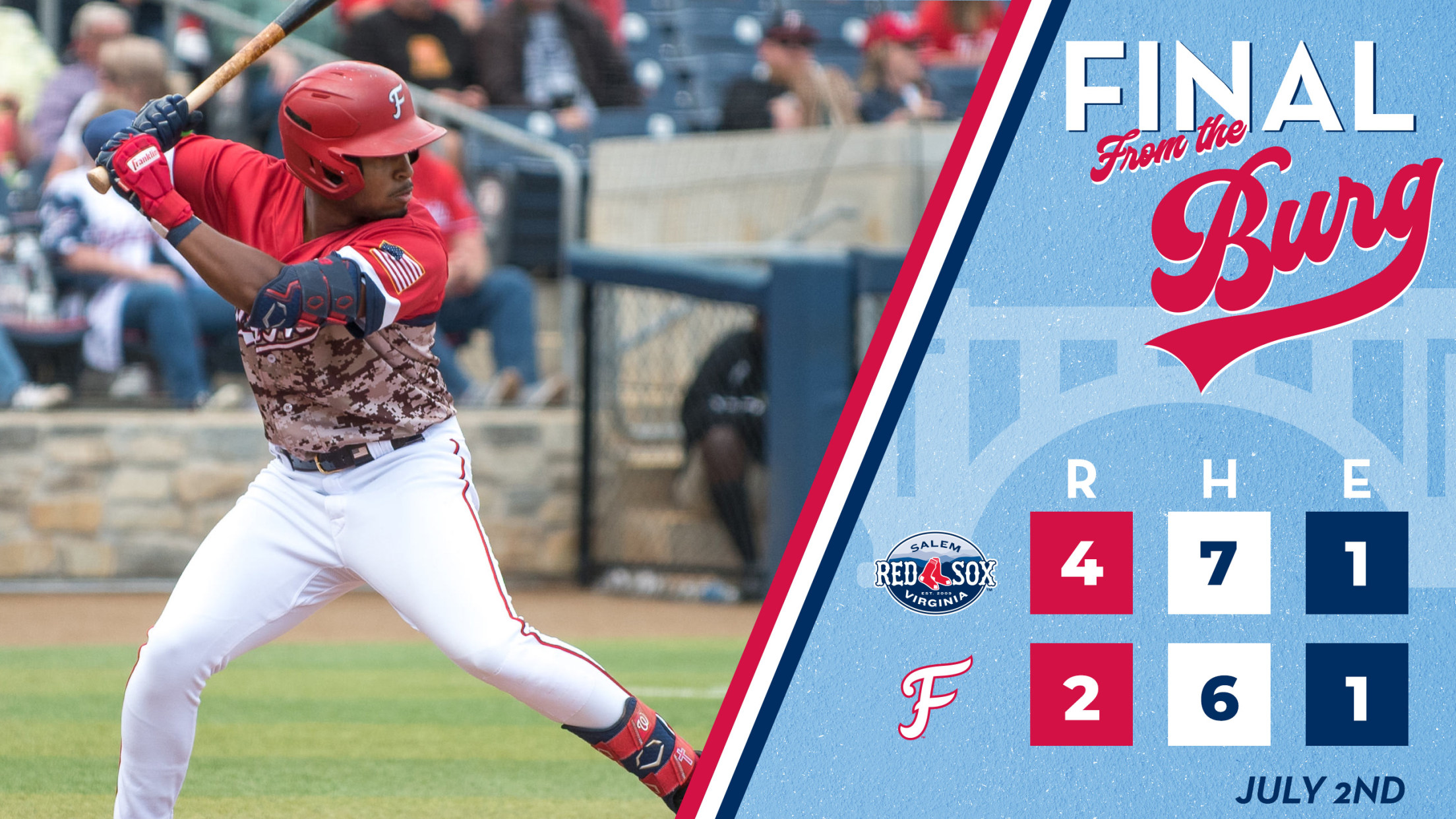 FREDERICKSBURG, VA - Salem took an early lead on a Salute to Service Sunday and never looked back, beating the FredNats 4-2. The Red Sox tagged Jarlin Susana for a pair of runs in the top of the first inning. He allowed a leadoff double to Cutter Coffey, then a