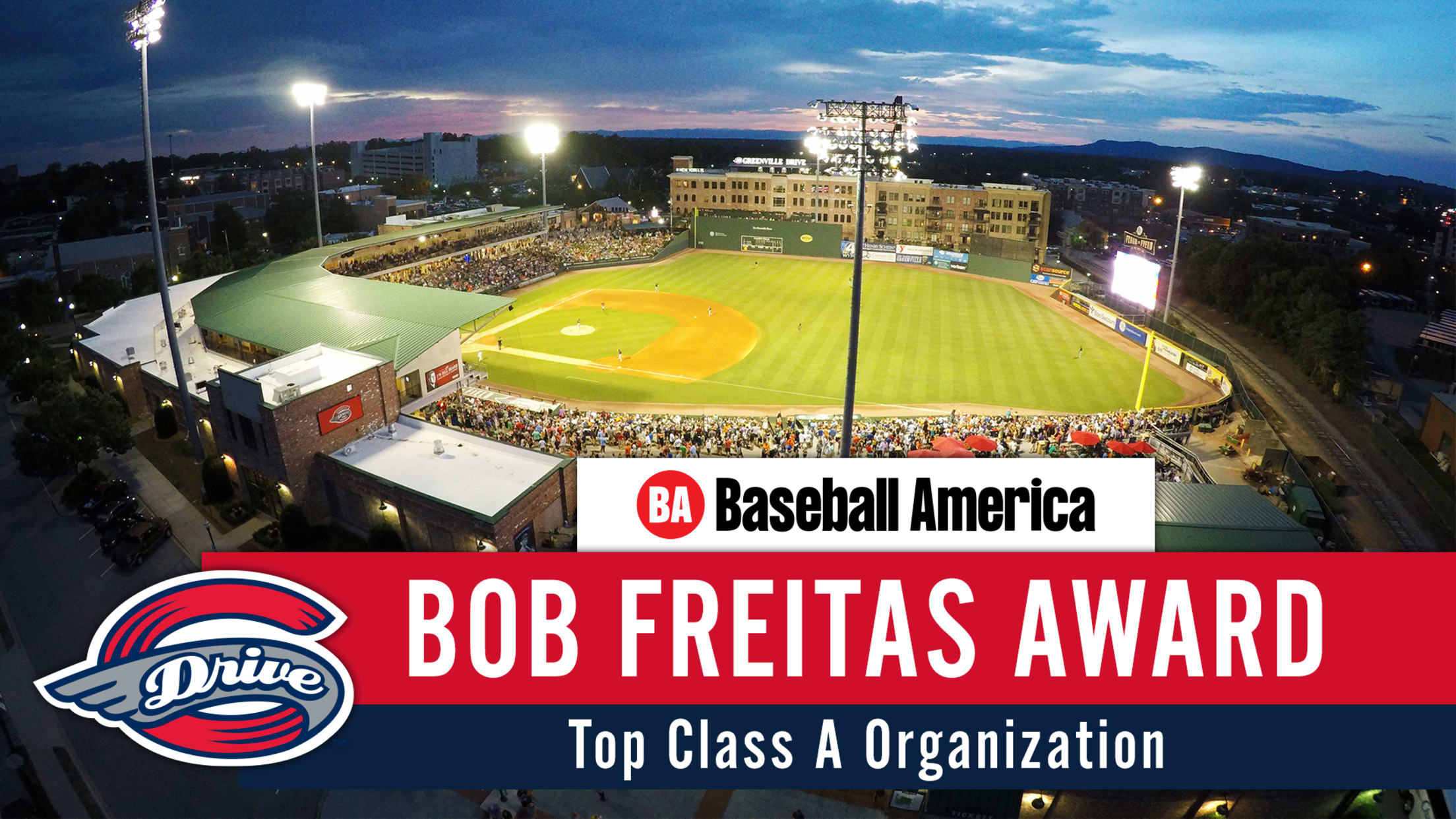 The Greenville Drive, a Single-A affiliate of the Boston Red Sox, has been honored as the nation’s top Single-A baseball team as the recipient of the prestigious 2020 Bob Freitas Award by Baseball America, the baseball industry’s premier publication. Named after longtime Minor League Baseball ambassador Bob Freitas, the award honors franchises that have demonstrated long-term success and sustained excellence in the business of Minor League Baseball.