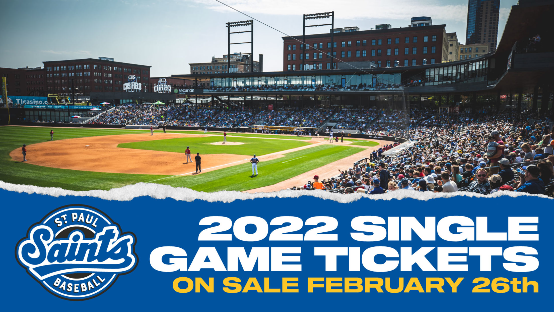On Saturday, February 26 fans can begin purchasing single-game tickets to all 75 home games. The box office, located on Broadway St. between 4th and 5th Streets, will be open from 9:00 a.m. - 2:00 p.m. Those showing up in person can purchase tickets an hour prior to them going on sale via phone and online. Fans can purchase tickets by phone at 651-644-6659, or visiting saintsbaseball.com, beginning at 10:00 a.m. Prior to February 26 the only way fans can assure a seat to 2022 games at CHS Field are season tickets (full or half season), 12-game mini plan, a group of 25 or more, or unique promotional ticket packages.