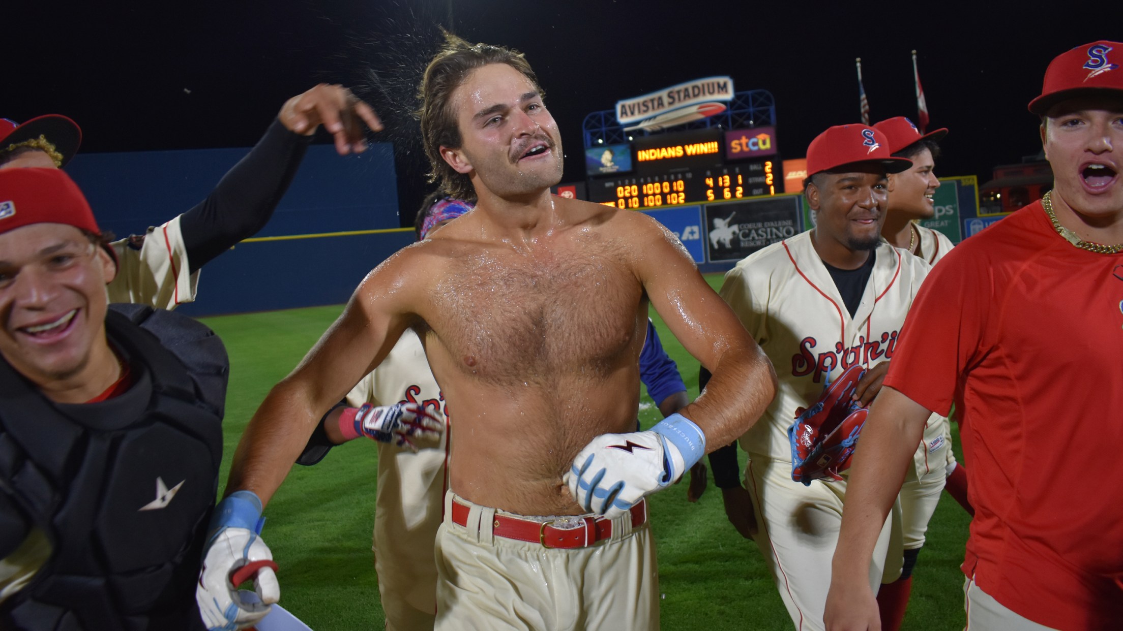 Kyle Karros was not having a good night. Spokane's third baseman was 0-for-4 with three strikeouts when he stepped to the plate in the bottom of the ninth with two outs and the bases loaded. It took just one swing to turn his disappointing game into another memorable win for the seemingly unstoppable Indians. Karros drilled a hanging fastball from Hillsboro's Alfred Morillo into the gap as EJ Andrews and Cole Carrigg raced home for the winning runs in Spokane's 5-4 walk-off victory over Hillsboro in front of 4,006 fans at Avista Stadium for SCRAPS Bark in the Park Night.