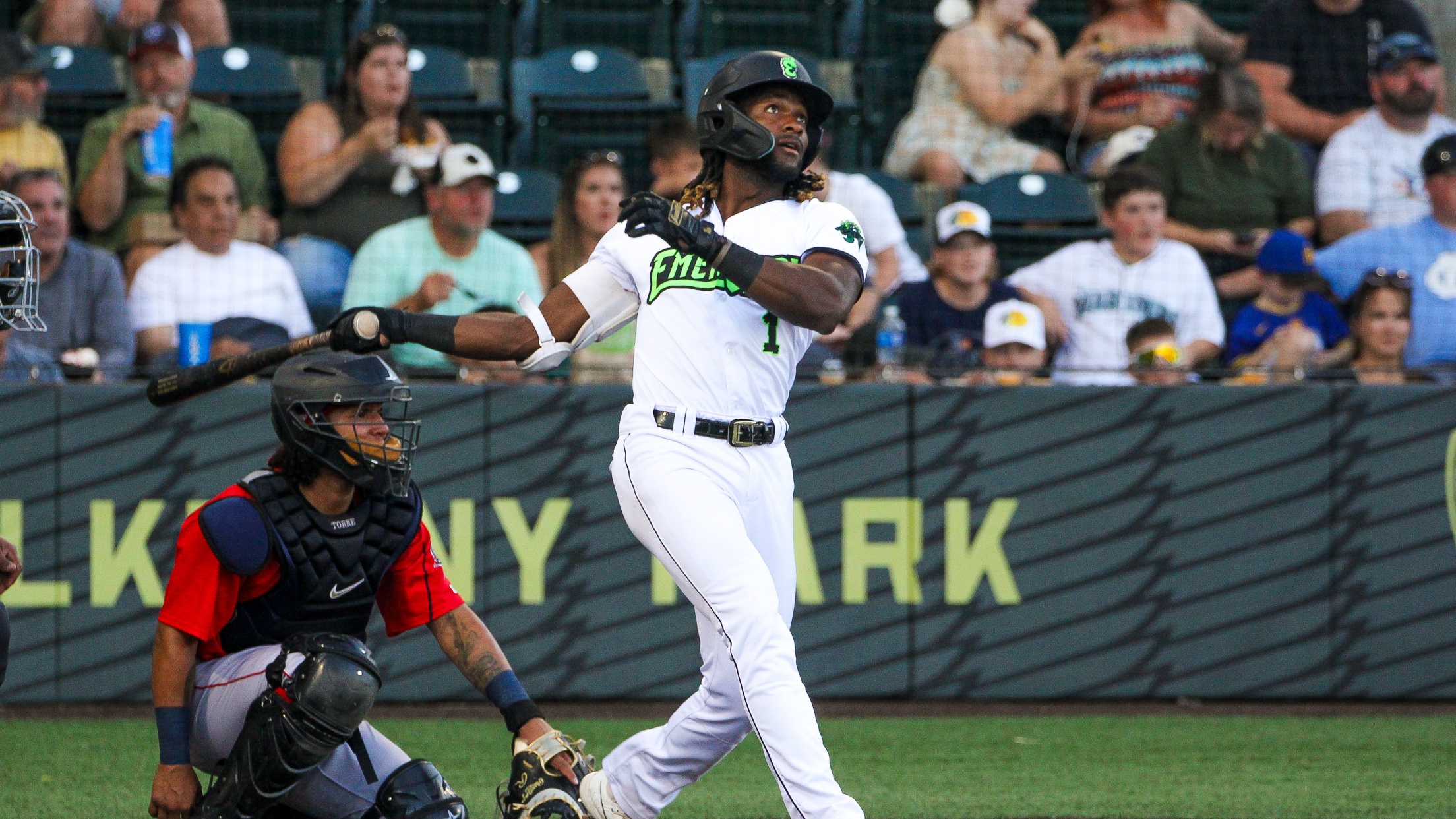 The Emeralds scored their first run in the latter half of the same inning. With Grant McCray in scoring position after a single and his 38th stolen base of the season, Aeverson Arteaga hit an RBI single to left field to cut the deficit back to two.