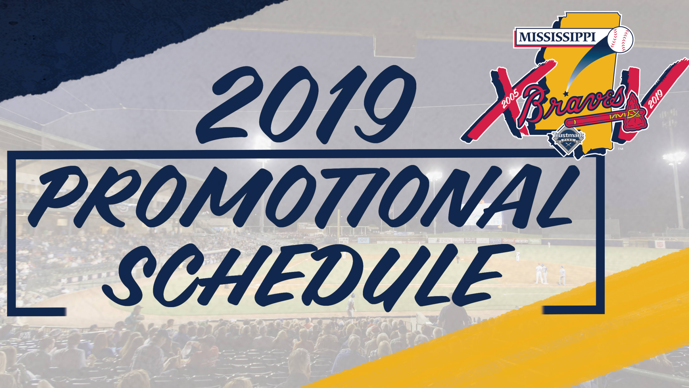 PEARL, MS - The Mississippi Braves will celebrate their 15th anniversary season with a promotional schedule that embraces the 2019 theme, "M-Brace The Fun." In addition to the announcement of the 2019 promotional schedule, single-game tickets to all 70 home games are on sale tomorrow Tuesday, March 5 at 10:00 am.