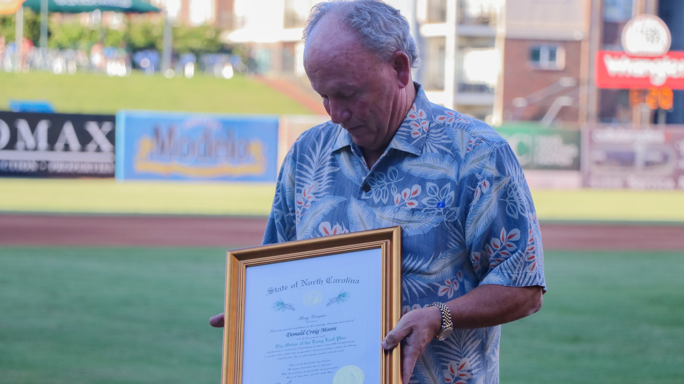 The Hoppers dedicated the night to celebrate Moore’s lifetime of service to his hometown and 22 years in Minor League Baseball. In addition to receiving Greensboro’s Key to the City, Donald was also bestowed The Order of the Long Leaf Pine.