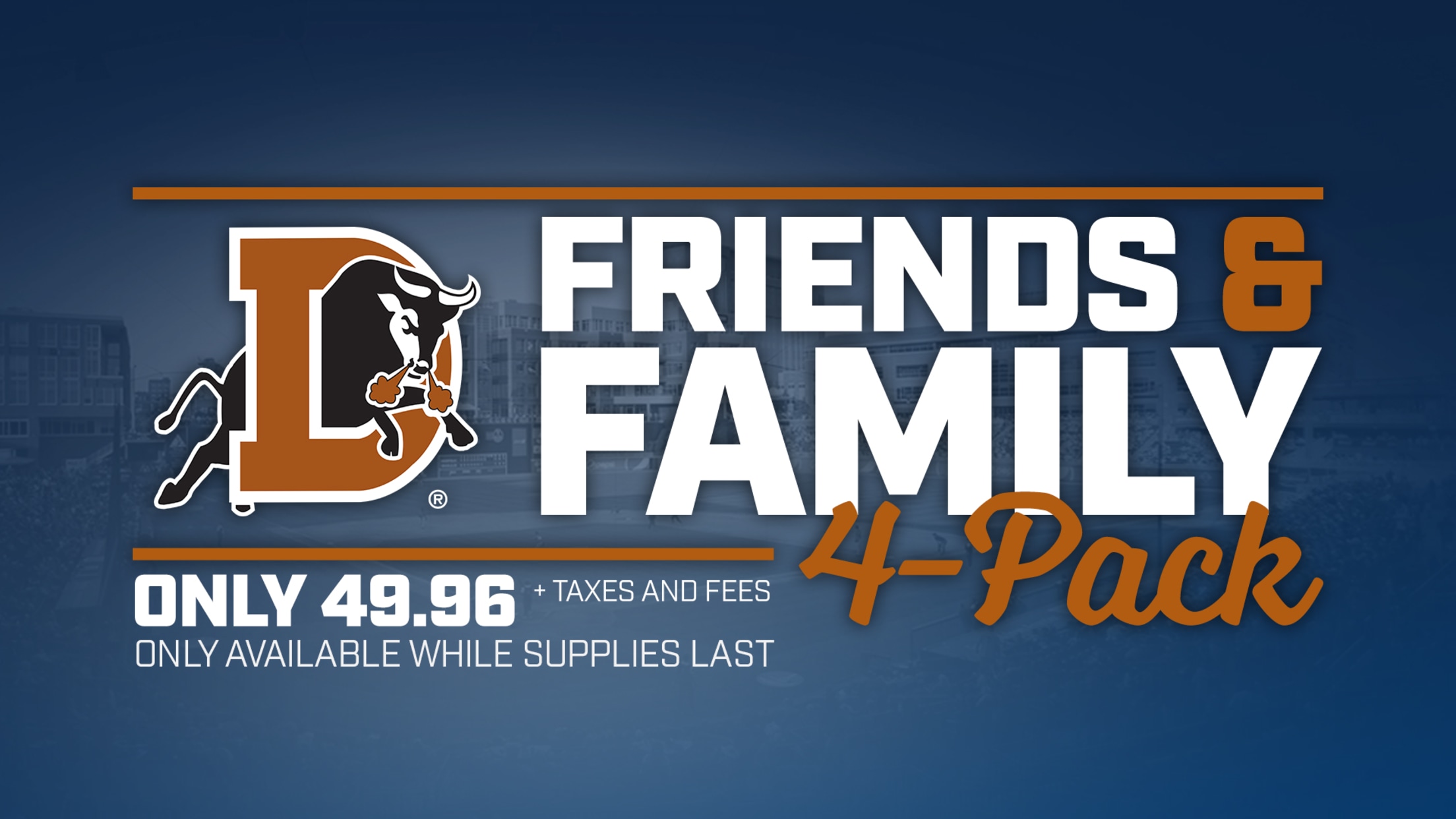 Take advantage of the Durham Bulls' first Friends & Family 4-Pack of the 2017 season by purchasing the package for the team's game on Sunday, June 25 against the Charlotte Knights at 5:05 p.m. The four-pack includes: 4 Terrace View tickets 4 Durham Bulls blankets 4 jars of spaghetti sauce