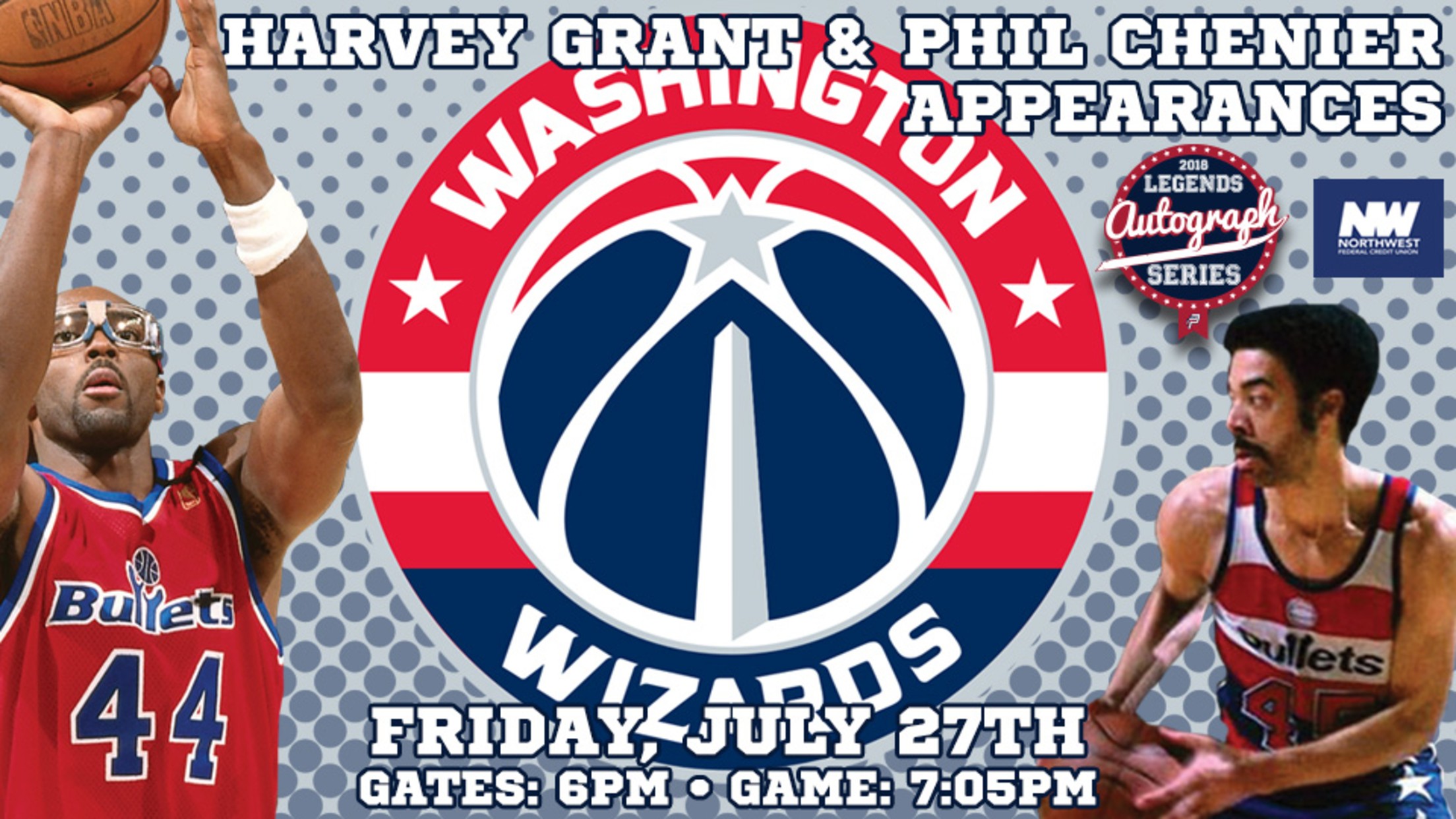 Grant, now part of the eight event Legends Autograph Series, presented by Northwest Federal Credit Union, will hold a meet and great autograph session along with Phil Chenier on Washington Wizards Night on Friday, July 27th. All autograph signings are free, and will be available for fans on a first-come, first-serve basis. The autograph session will begin as soon as gates are open on Friday, July 27th.