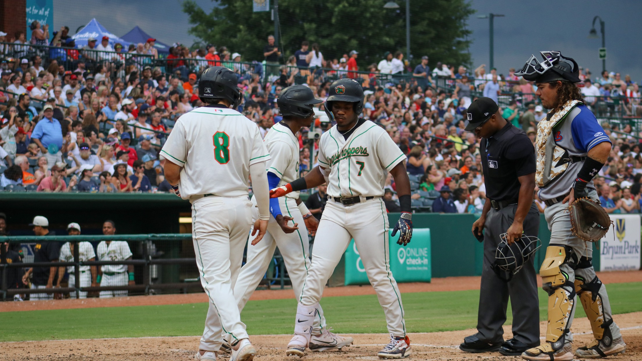 GREENSBORO, N.C. – The Greensboro Grasshoppers defeat the Aberdeen IronBirds, 8-4 on Thursday, July 4. Greensboro improved to 11-2 on the second half of the season while the IronBirds fell to 7-6. Both teams recorded seven hits while the Grasshoppers had three mishaps.