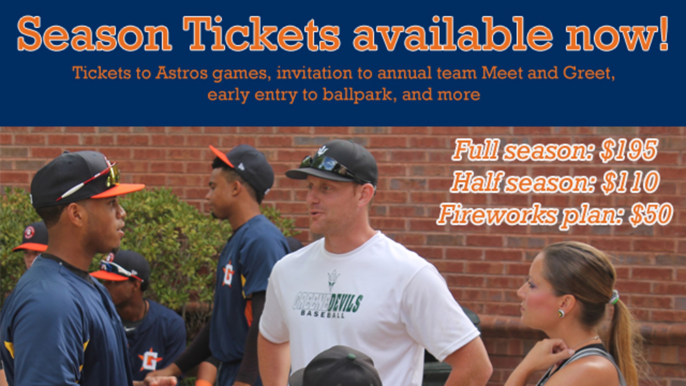 Greeneville Astros season tickets available now Ticket office open Monday-Friday from 10-5 By Kelsey Thompson January 4, 2017 Facebook Share X Share Email Copy Link [Empty Body] [Empty Body] Read More: Greeneville Flyboys