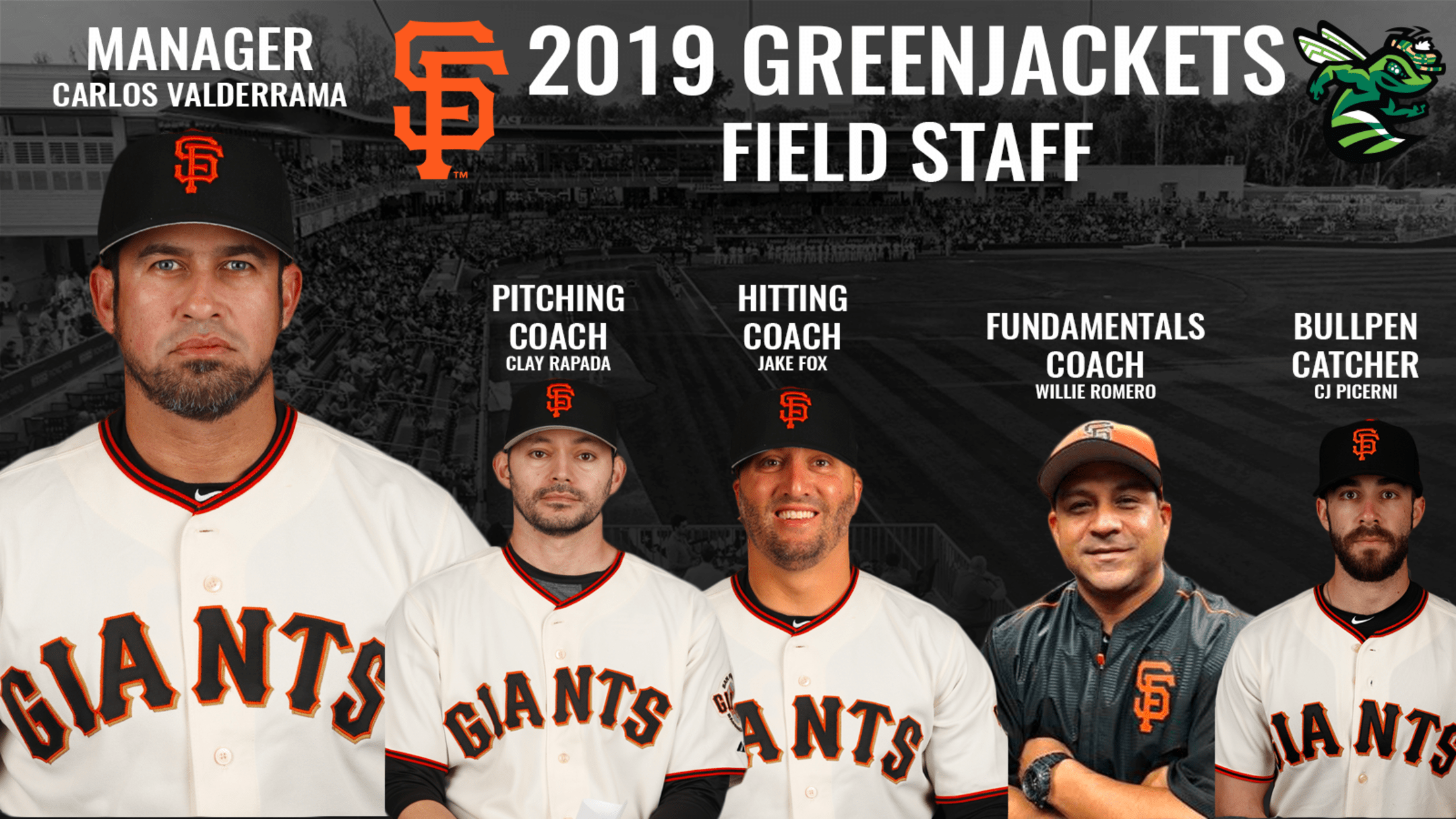 NORTH AUGUSTA, SC - The Augusta GreenJackets, Single 'A' Affiliate of the San Francisco Giants, in conjunction with their parent club, the San Francisco Giants, have announced the 2019 Field Staff for SRP Park. Carlos Valderrama will take over the reigns of the managerial post as we welcome him back for his second season in the CSRA.
