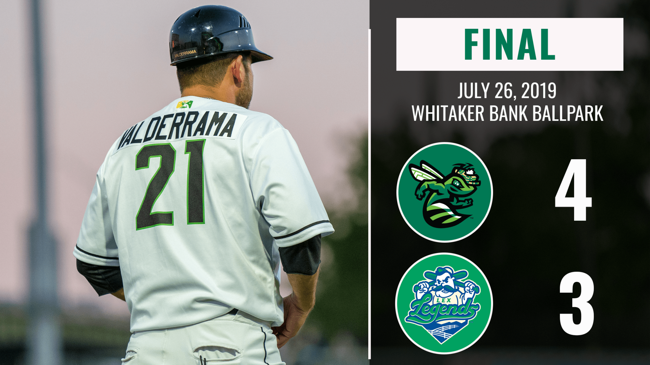 The GreenJackets drove through the night on the bus from Columbia, but in the 1st inning, Lexington looked like the team dealing with fatigue. The GreenJackets scored four runs, as the Legends committed two errors. It was run-scoring hits for