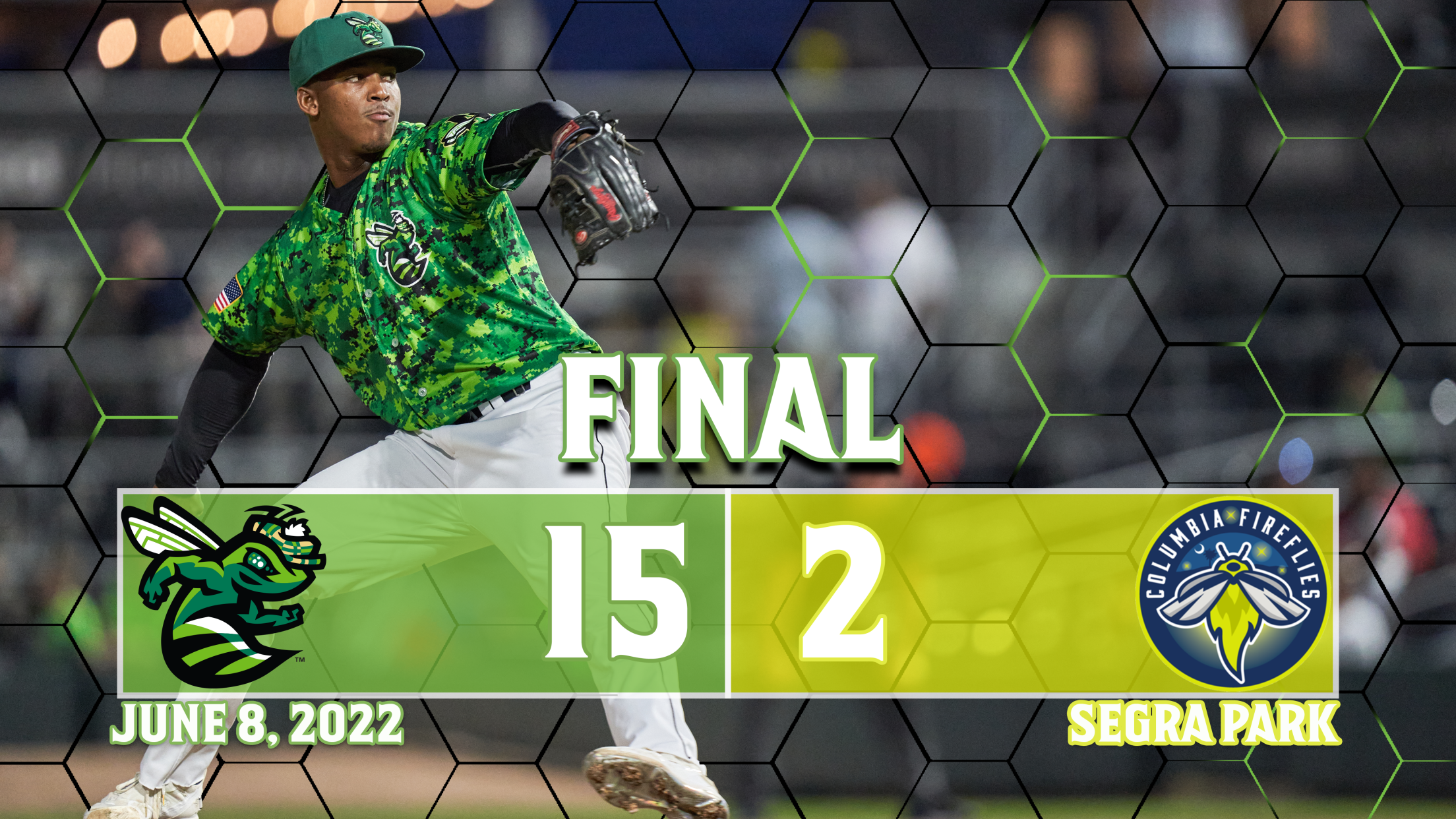 COLUMBIA, SC: The Augusta GreenJackets (28-25) evened the series with the Columbia Fireflies (15-38) on Wednesday night as they dominated their I-20 Rivals from the opening pitch in a 15-2 victory.