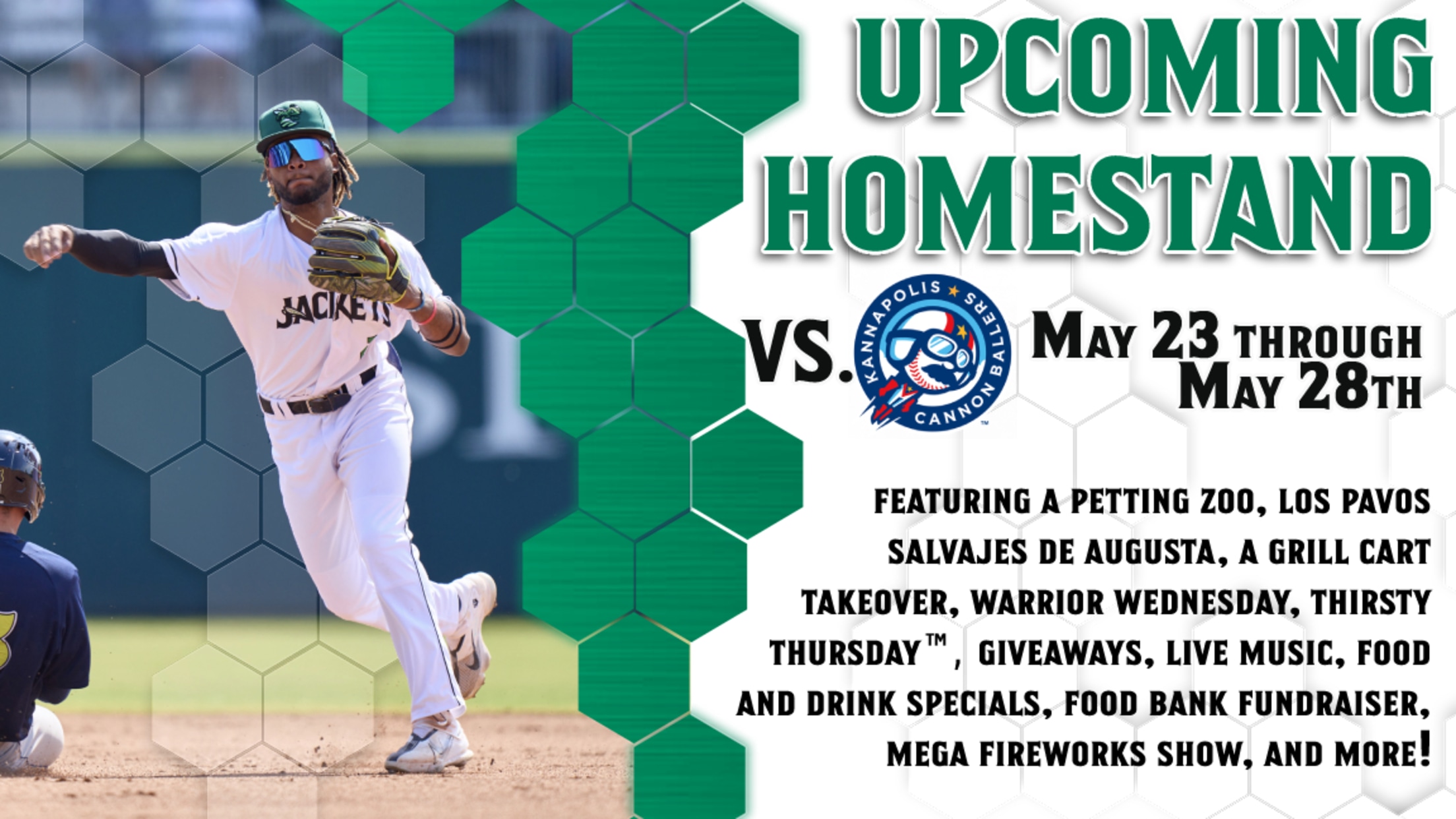 *Wednesday, May 24th vs. Kannapolis Cannon Ballers (7:05pm first pitch, gates open at 6:00) | Media partner: WGAC News Talk Augusta *