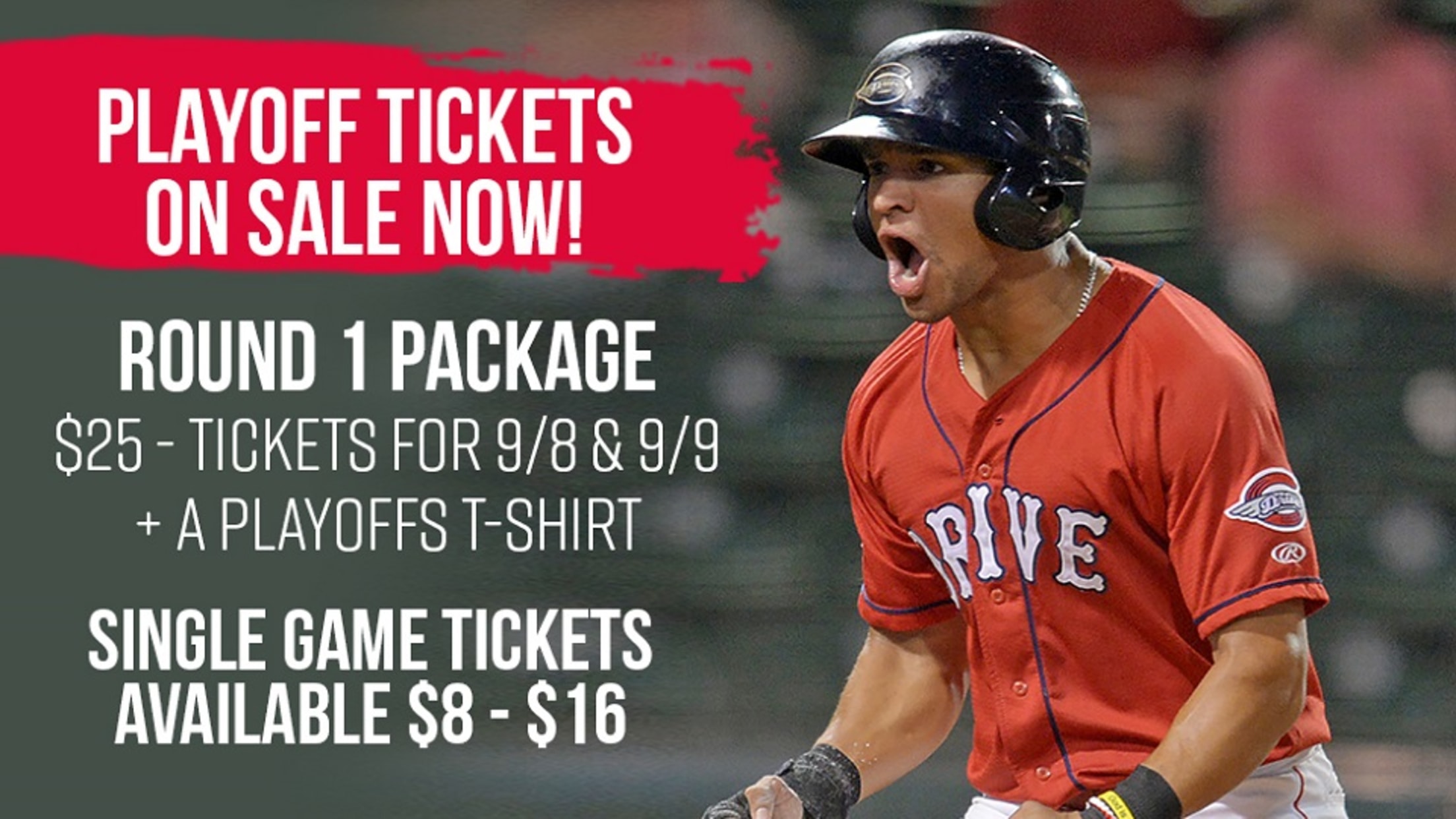"We are thrilled about playoff baseball returning to Fluor Field for our players, our staff, and our passionate fans, and we're passing our excitement on to the fans by putting playoff tickets on sale," said Drive General Manager Eric Jarinko. "This has been a tremendous season for the Drive, and we are excited to see our talented young players putting their talents on display under the bright lights of the postseason."