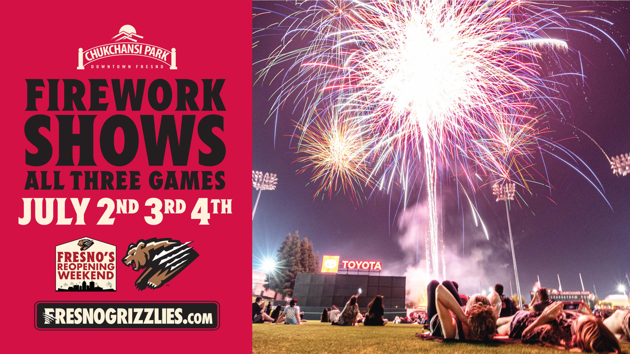 (Fresno, CA) - The Fresno Grizzlies have officially declared July 2-4 Fresno’s Reopening Weekend! The Grizzlies will be hosting a weekend-long celebration featuring food trucks, fireworks, and more to commemorate the lifting of the pandemic’s restrictions and honor Independence Day. Downtown Fresno will be full of excitement throughout the weekend