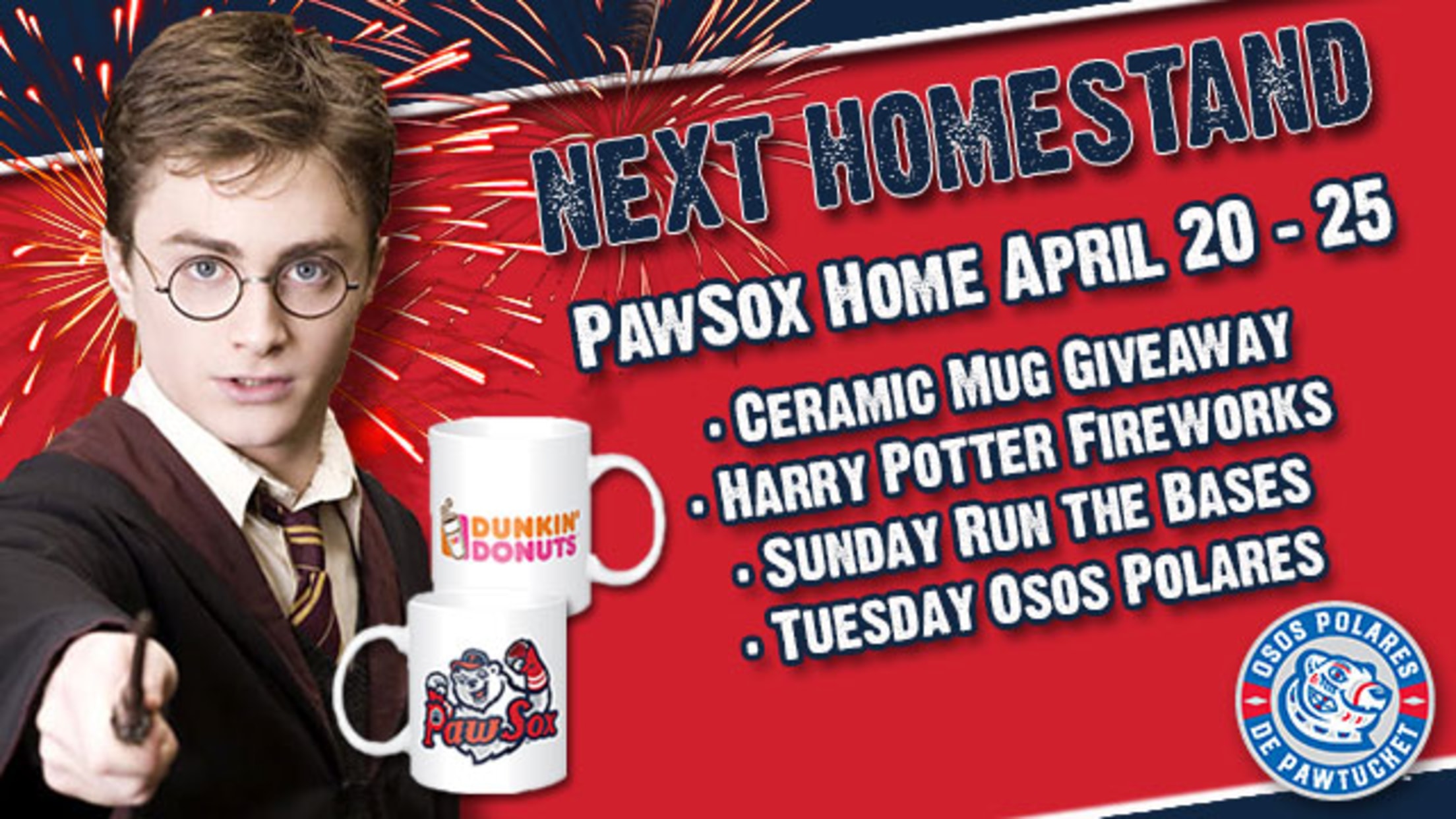 The PawSox will also continue to have fireworks shows every Saturday night, and will hold their first post-game display this Saturday evening after they take on Gwinnett. The first show of the year is "Harry Potter" themed, and the PawSox will be hosting an on-field Quidditch match between the Providence Ashwinders URI's Rhody Ridgebacks. Qudditch lessons will be available for free on Mondor Way prior to the game, so don't miss out on a Saturday filled with Harry Potter festivities, courtesy of Pyrotecnico and Cat Country 98.1. The PawSox will wrap up their series with Gwinnett on Sunday, where kids and their families will once again be invited on the field to run the bases after the game.