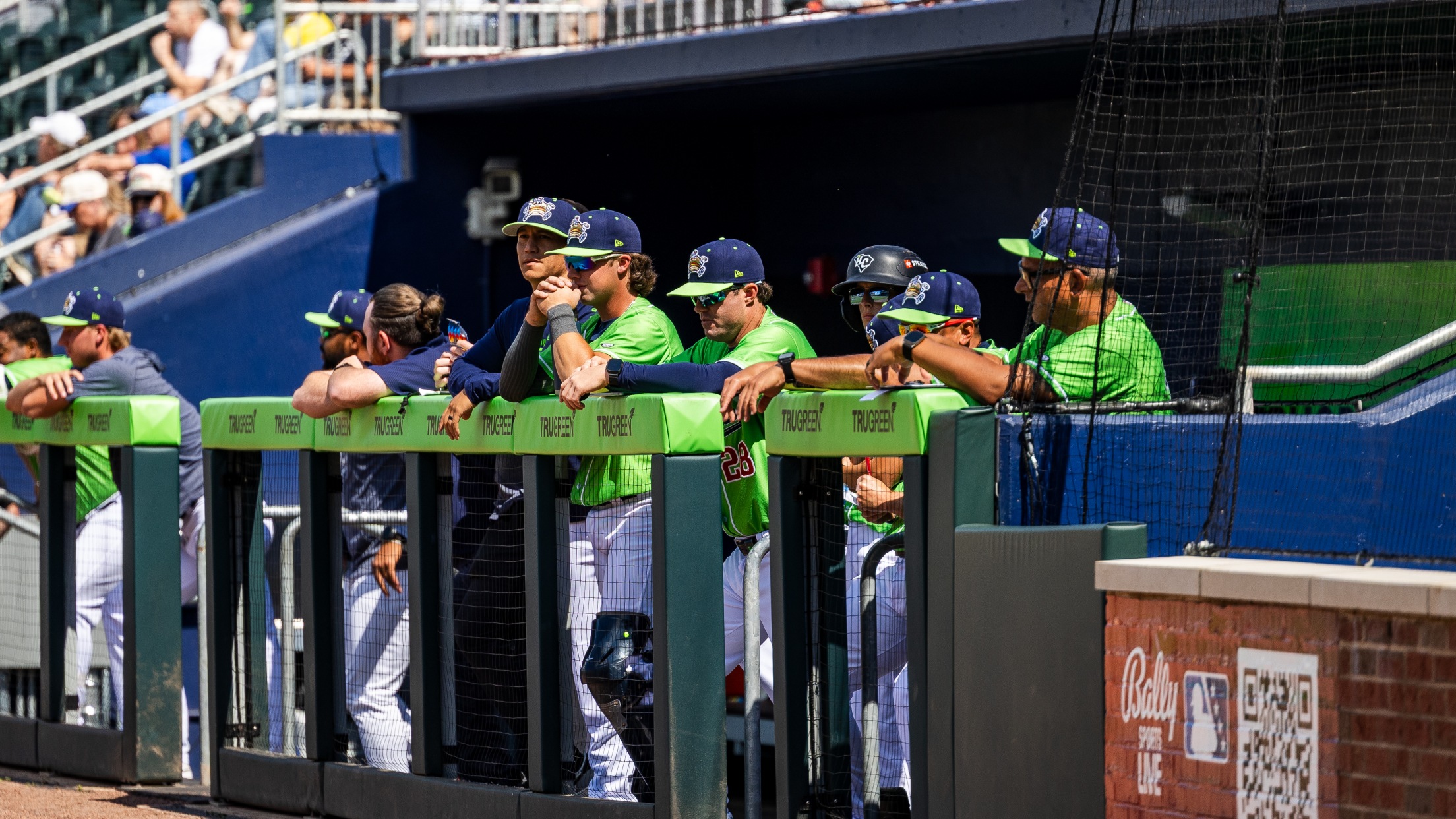 Spartanburgers stand in the dugout at FIfth Third Park.