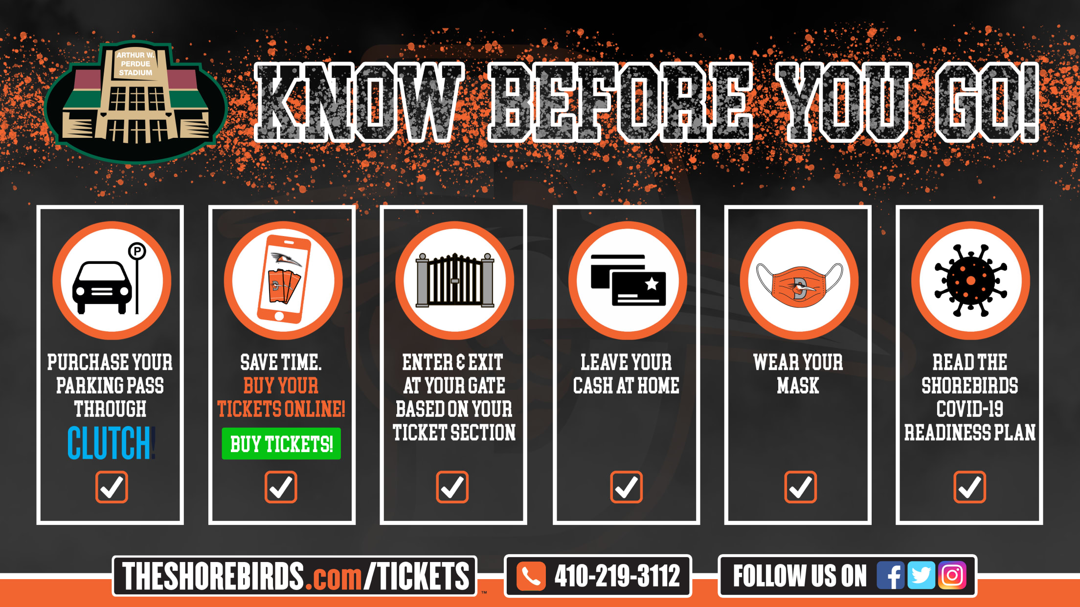 Opening Week is NEXT WEEK and we are excited to welcome YOU back for Shorebirds baseball! As we welcome our fans back to Arthur W. Perdue Stadium, here are some things YOU need to know before you arrive to the stadium for Shorebirds baseball this season. - Save Time. Buy