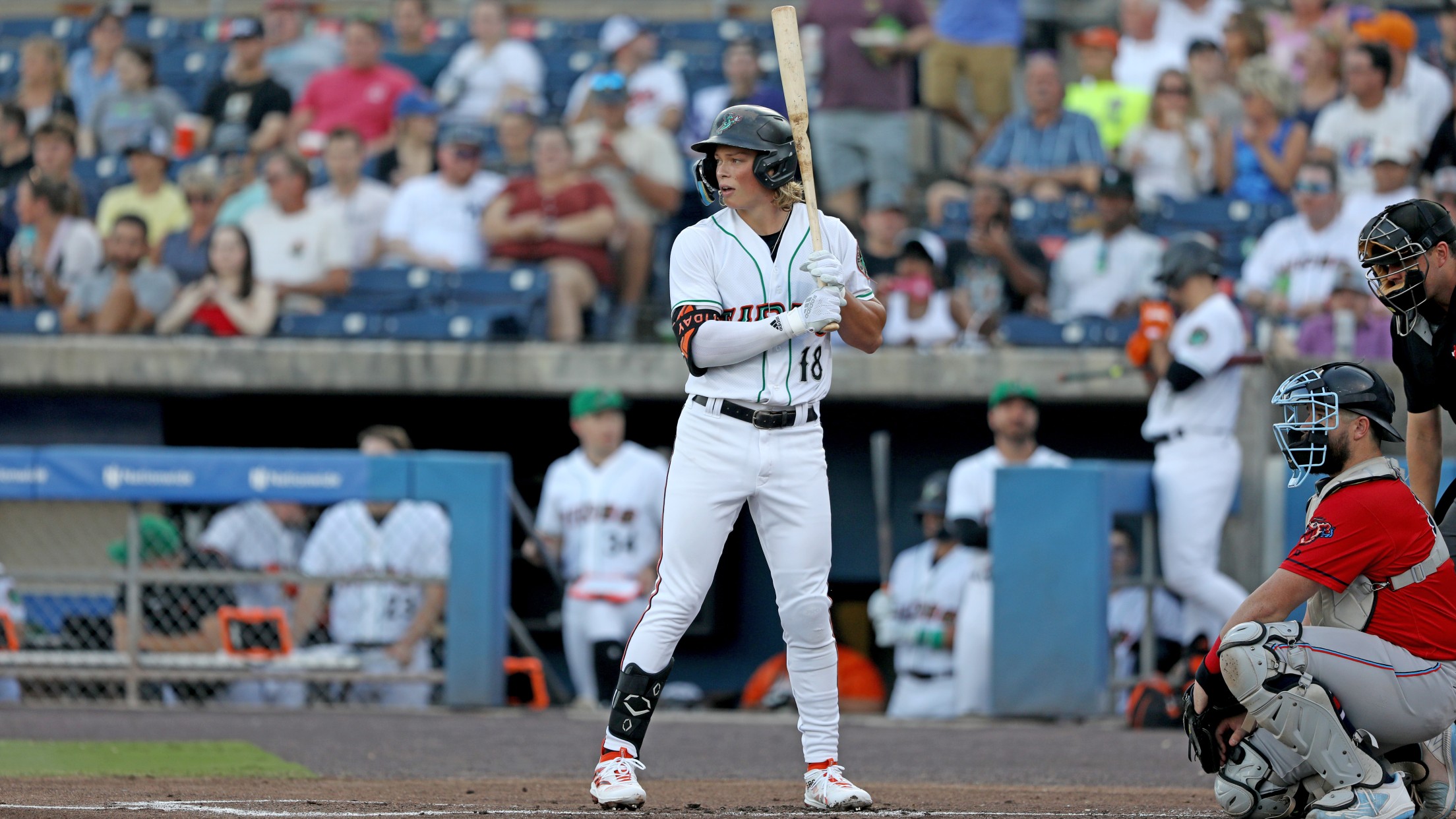 Norfolk dipped into the Jacksonville lead in the home half of the fourth with Heston Kjerstad driving one to straightaway center for a solo shot to get the Tides on the board.